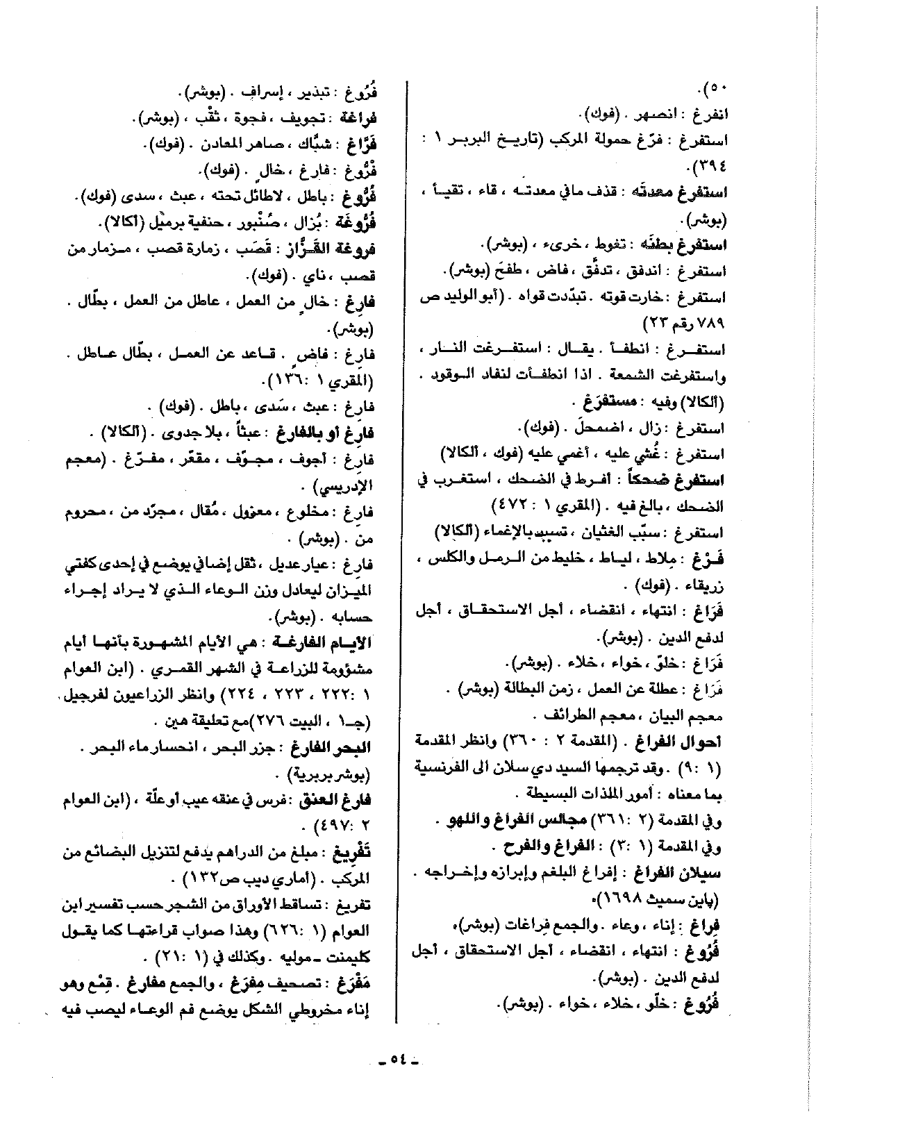 فارغ: فاض. قاعد عن العمل، بطال عاطل (المقري 1: 136).