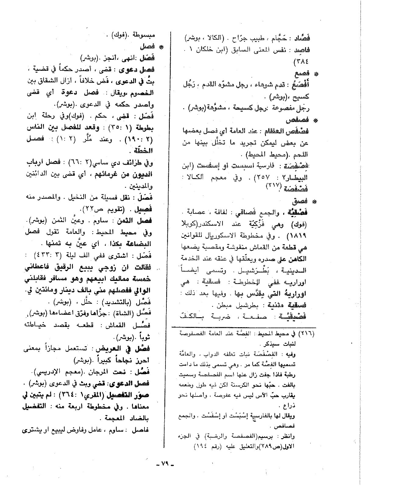 • فصق: فصقية، والجمع فصاقي: لفافة: عصابة. (فوك) وهي فزكية عند الاسكندر (كوبلا 1819). وفي مخطوطة الاسكوبال للقوانين هي قطعة من القماش منقوشة ومقصبة يضعها الكاهن على صدره ويعلقها في عنقه عند الخدمة الدينية، بطرشيل. وتسمى أيضا اوراريه. ففي المخطوطة: فسقية: هي اوراريه التي يقدس بها. وفيها بعد ذلك: فسقية مثنية: بطرشيل مبطن.