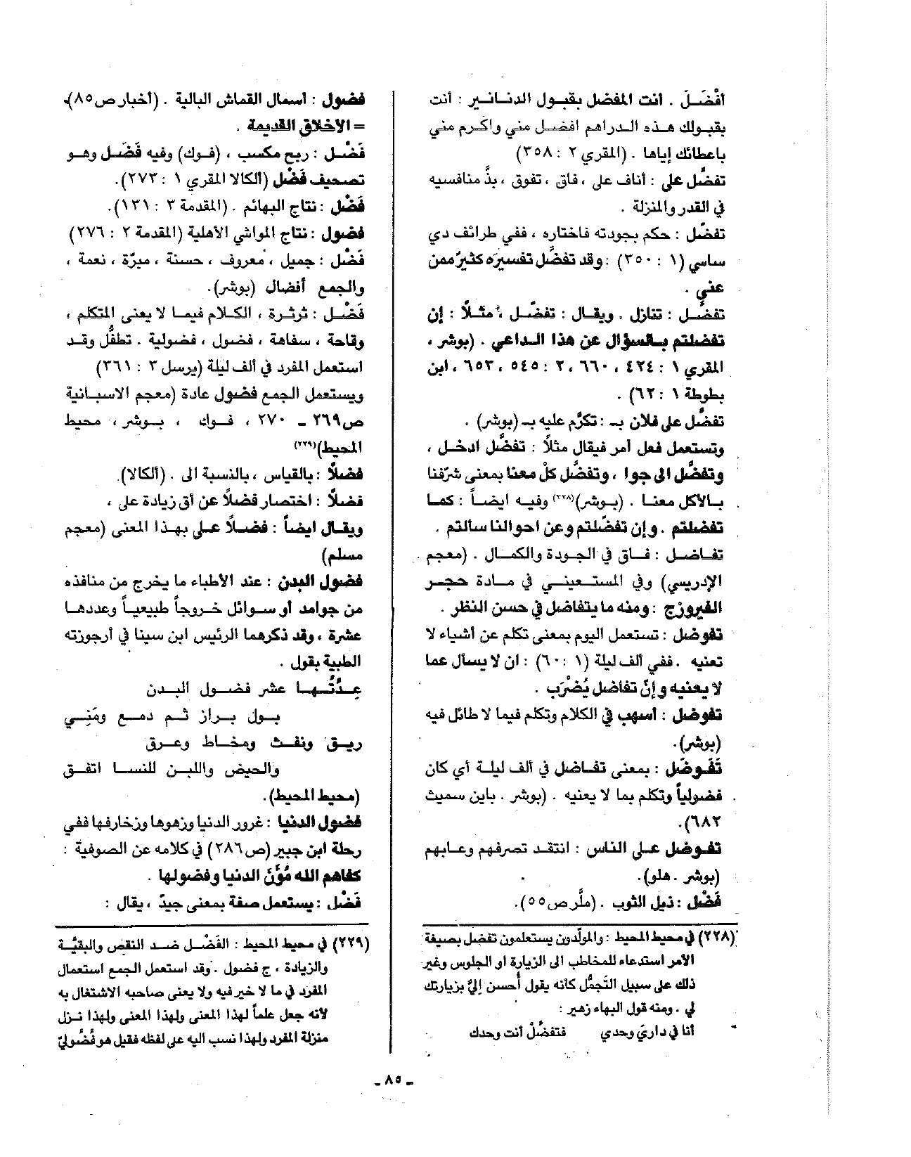فضل: ثرثرة، الكلام فيما لا يعني المتكلم، وقاحة، سفاهة، فضول، فضولية. تطفل وقد استعمل المفرد في ألف ليلة (يرسل 3: 361).