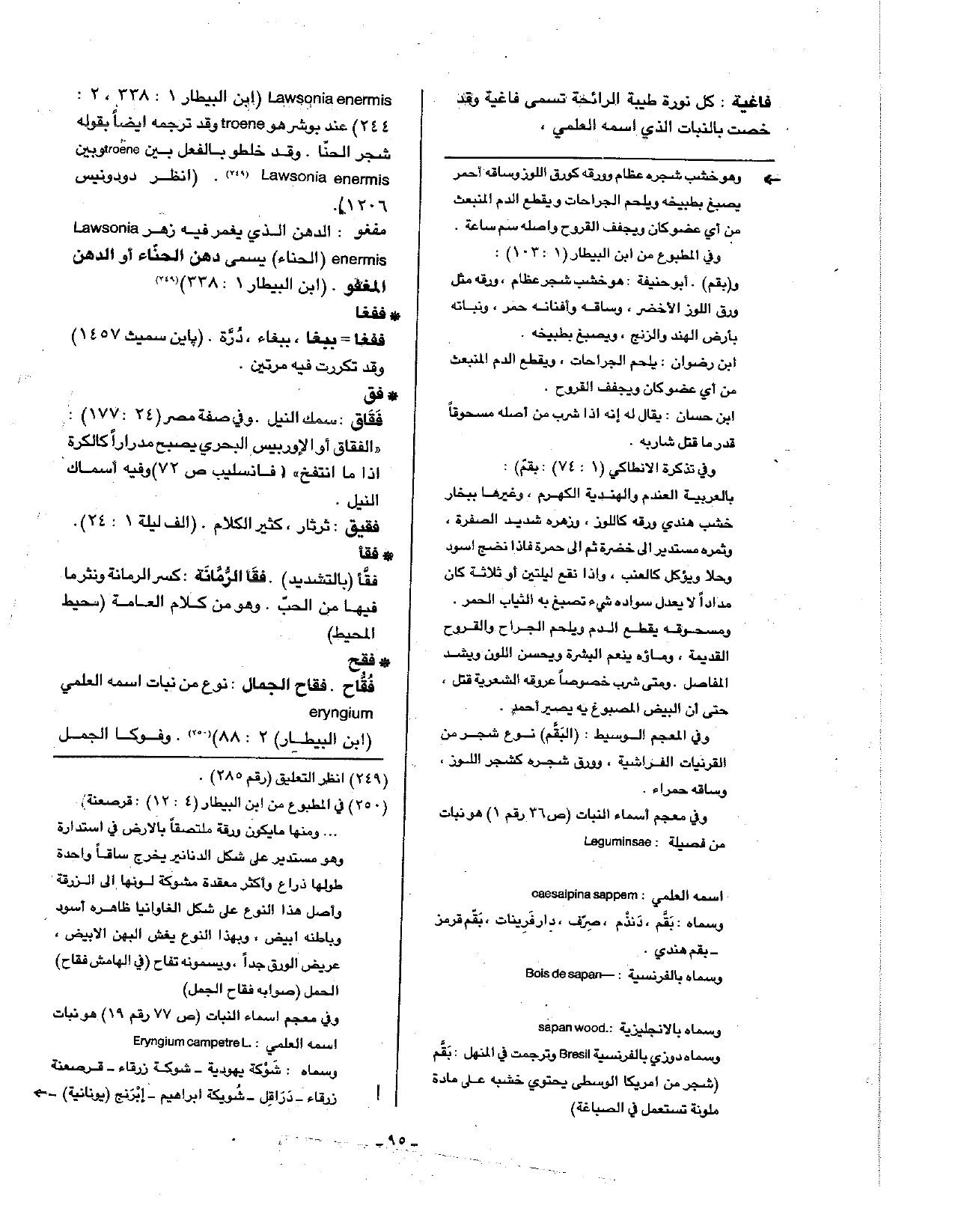 فاغية: كل نورة طيبة الرائحة تسمى فاغية وقد خصت بالنبات الذي اسمه العلمي: Lawsonia enermis ( ابن البيطار 1: 338، 2: 244) عند بوشر هو troene وقد ترجمه أيضا بقوله شجر الحنا. وقد خلطوا بالفعل بين troene وبين Lawsonia enermis. ( انظر دودونيس 1206).