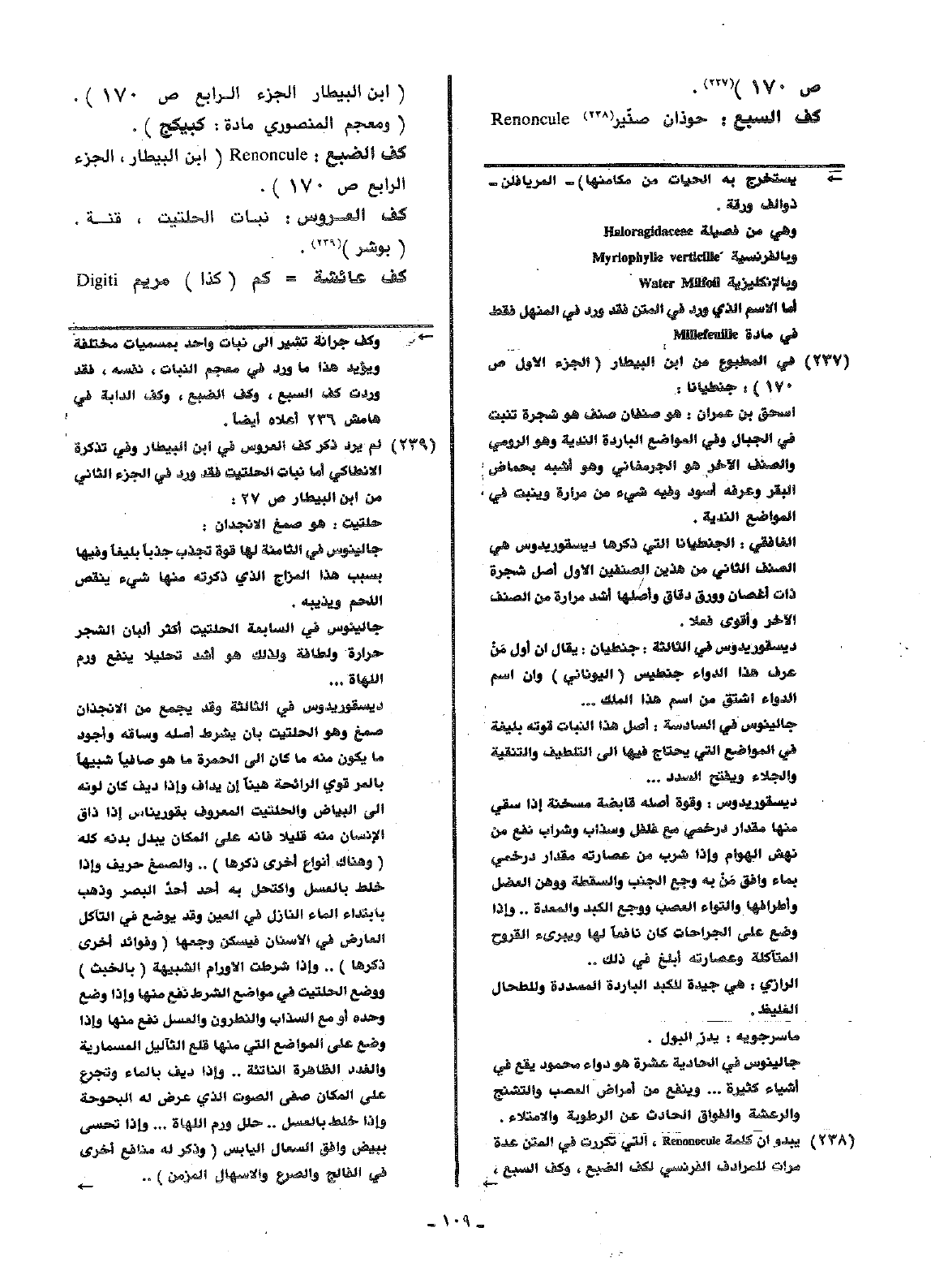 كف الضبع: Renoncule ( ابن البيطار، الجزء الرابع ص170).