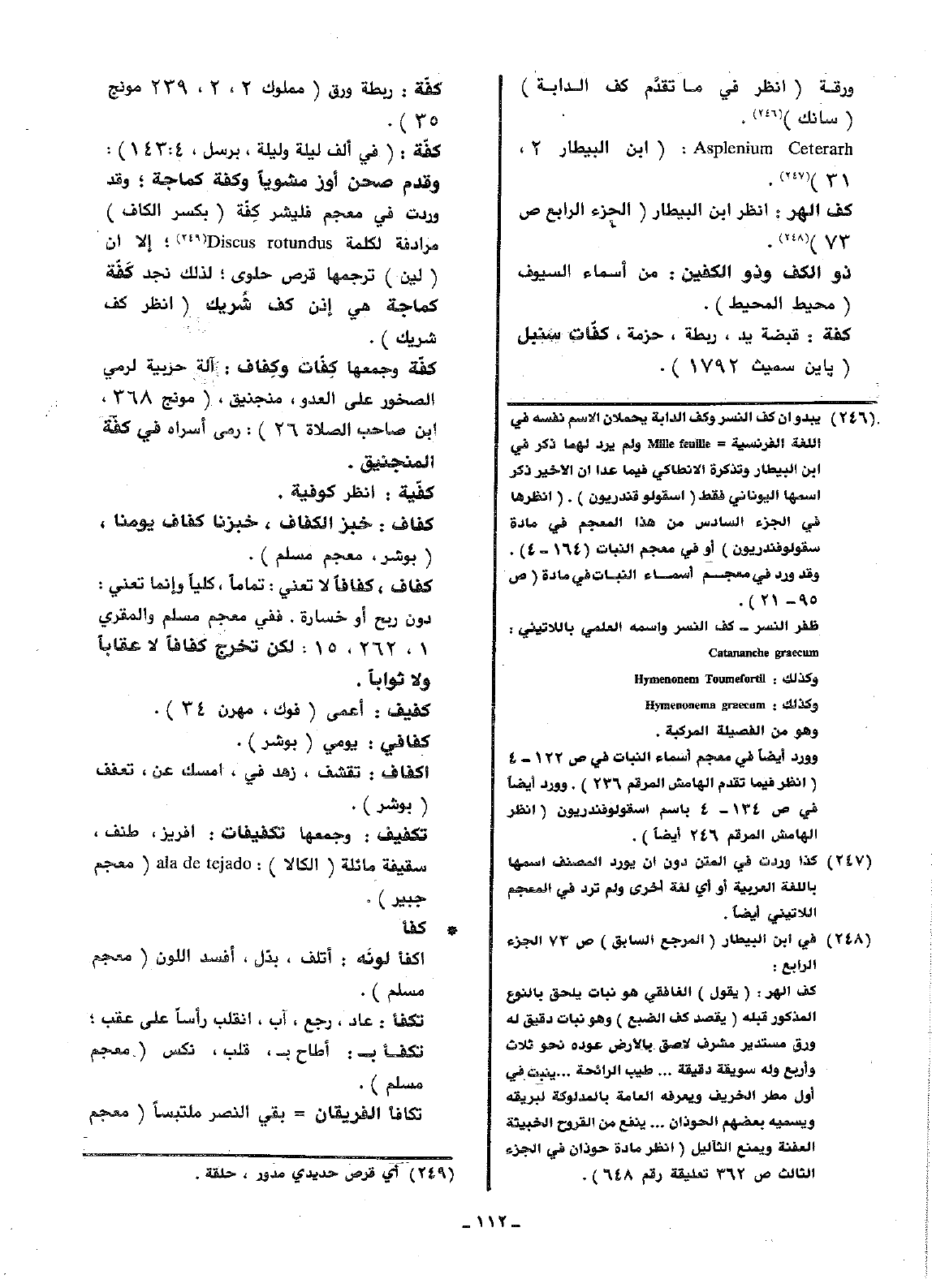 كف الهر: انظر ابن البيطار (الجزء الرابع ص73).