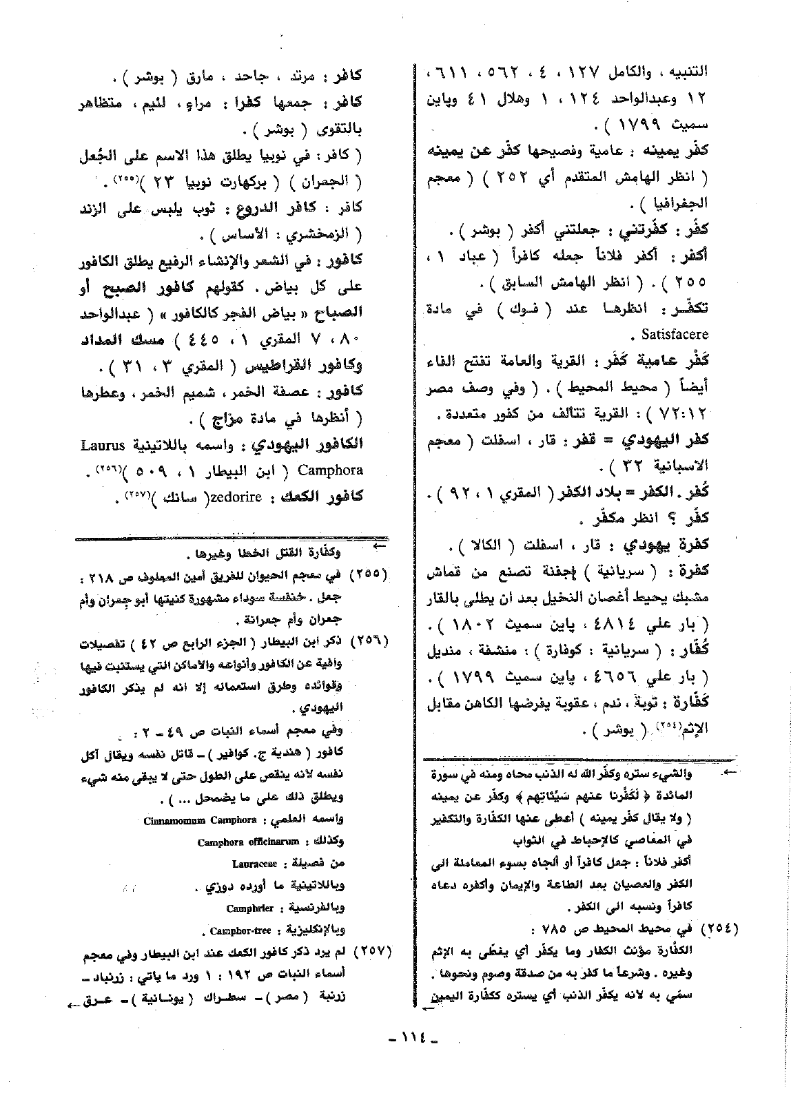 كفّر يمينه: عامبية وفصيحها كفّر عن يمينه (انظر الهامش المتقدم أي 252) (معجم الجغرافيا).