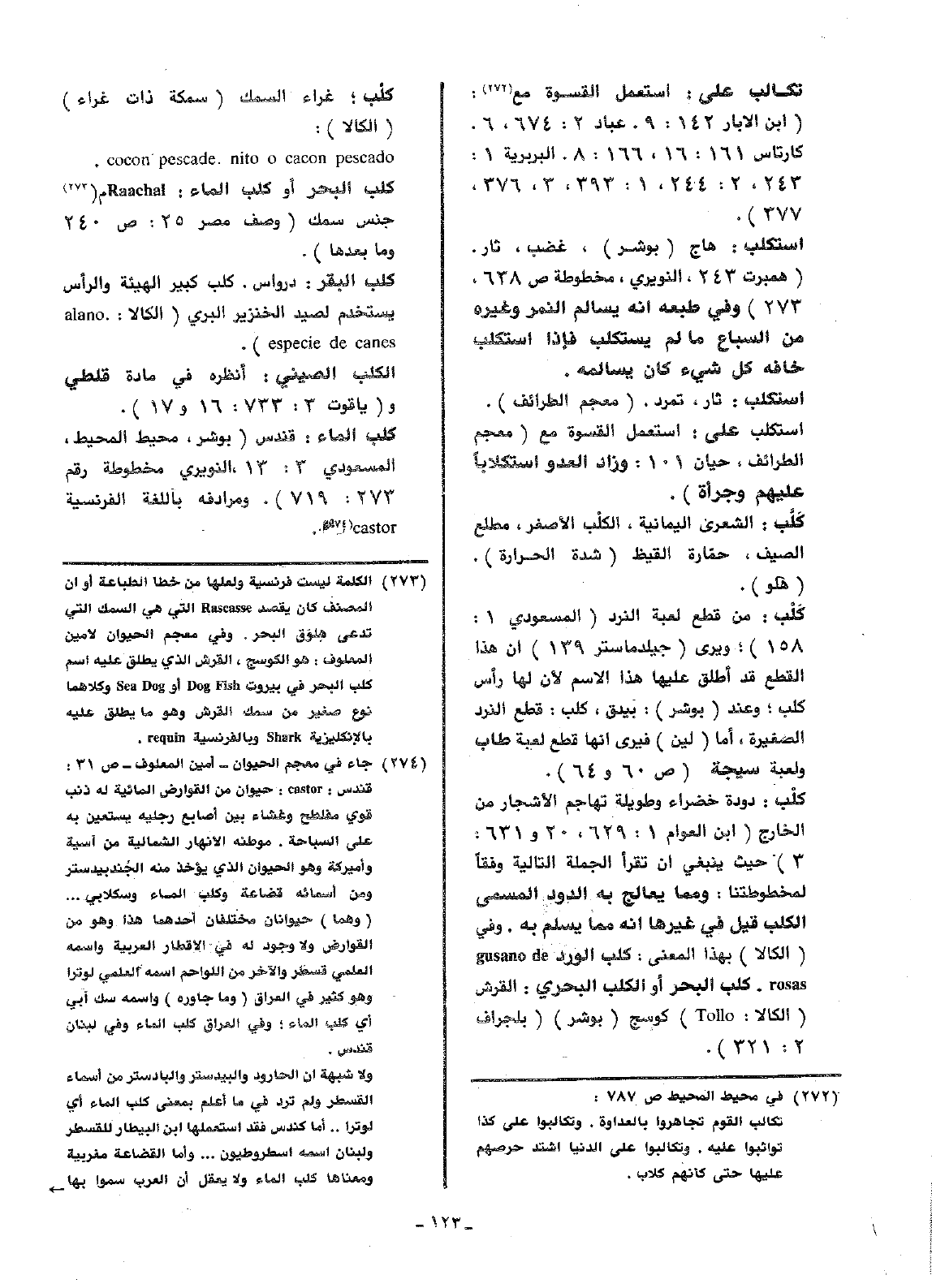 كلب الماء: قندس (بوشر، محيط المحيط، المسعودي 13:3، النويري مخطوطة رقم 719:273). ومرادفه باللغة الفرنسية castor.