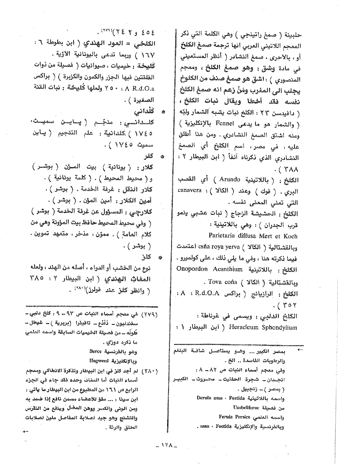 الكلخ الدلبي: ويسمى في غرناطة: Heracleum Sphondylium ( ابن البيطار 454:1 و242).