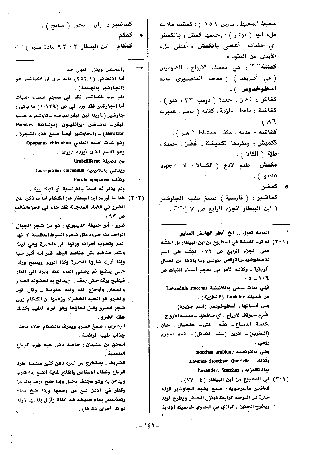 • كمشر: كماشير: (فارسية) صمغ يشبه الجاوشير (ابن البيطار الجزء الرابع ص7).