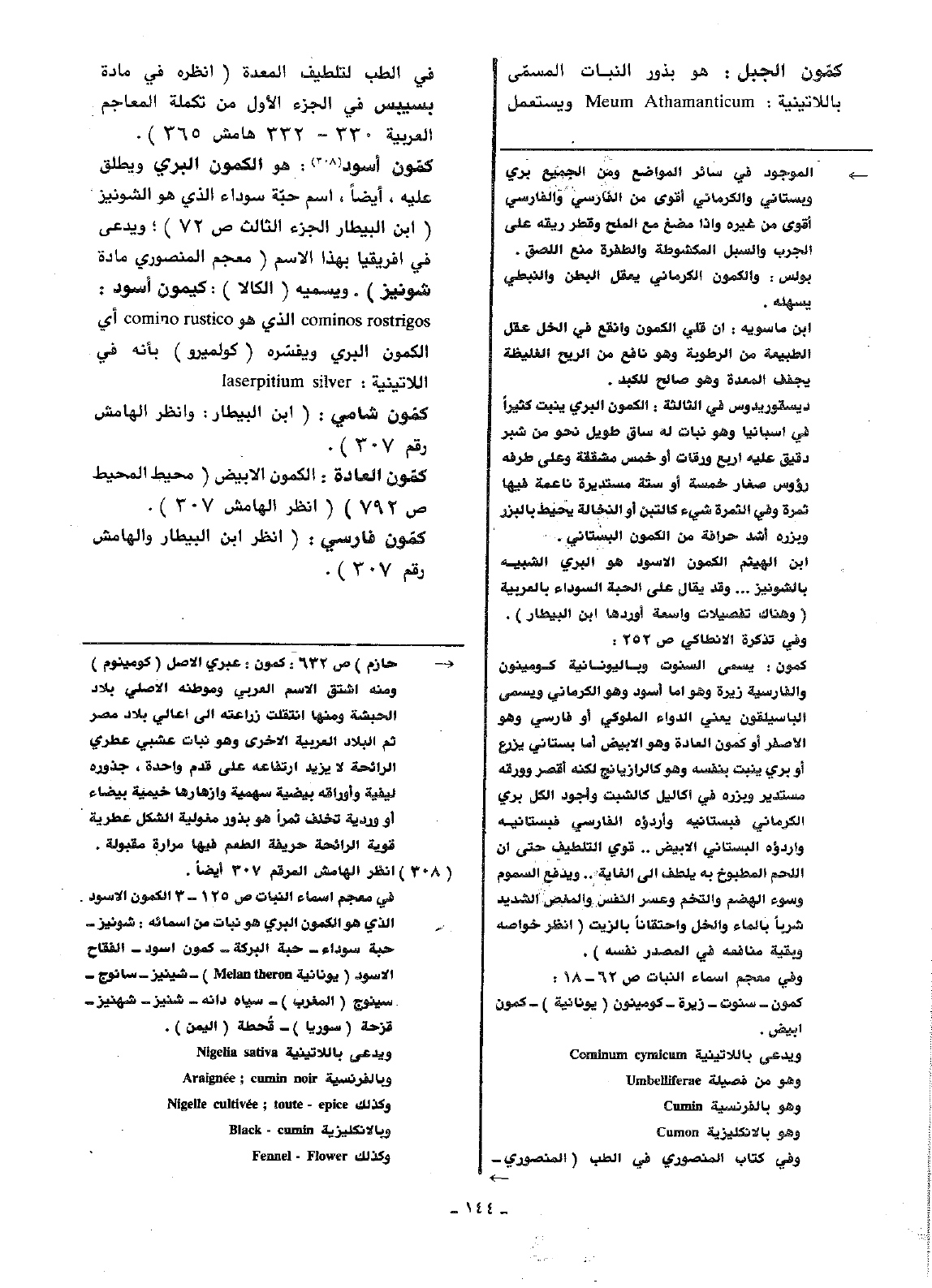 كمّون العادة: الكمون الأبيض (محيط المحيط ص792) (انظر الهامش 307).