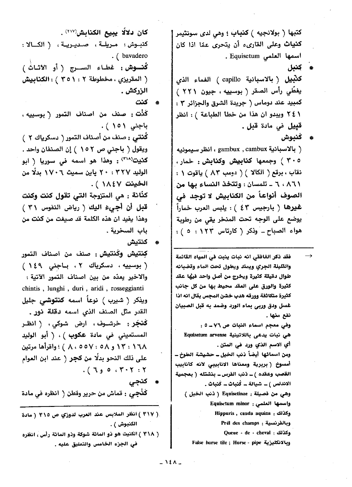 كتبها (بولانجية) كنباب؛ وهي لدى سونثمير منياث وعلى القارئ أن يتحرى عمّا اذا كان اسمها العلمي Equisetum.