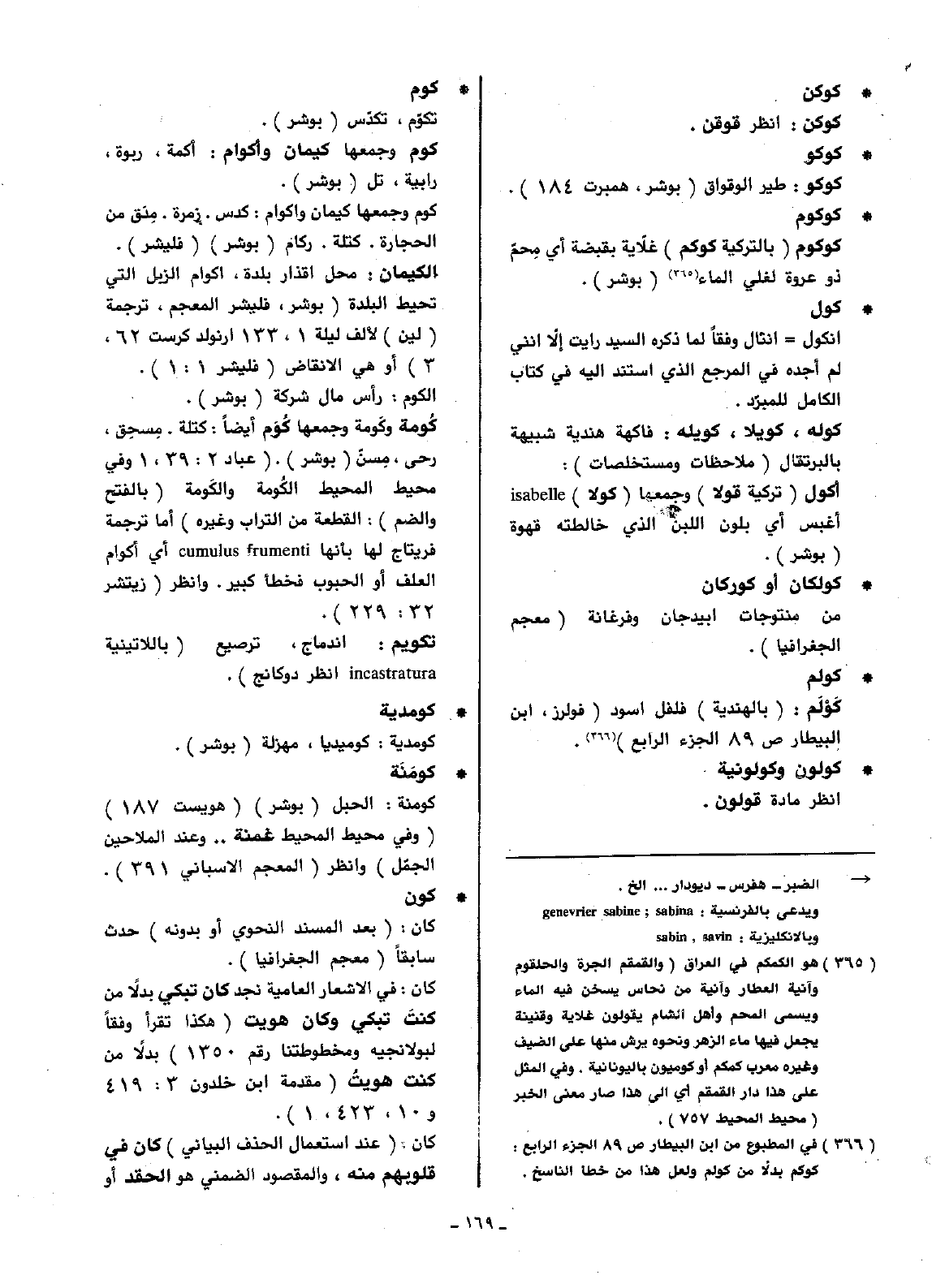• كولم: كَوْلَم: (بالهندية) فلفل اسود (فولرز، ابن البيطار ص89 الجزء الرابع).