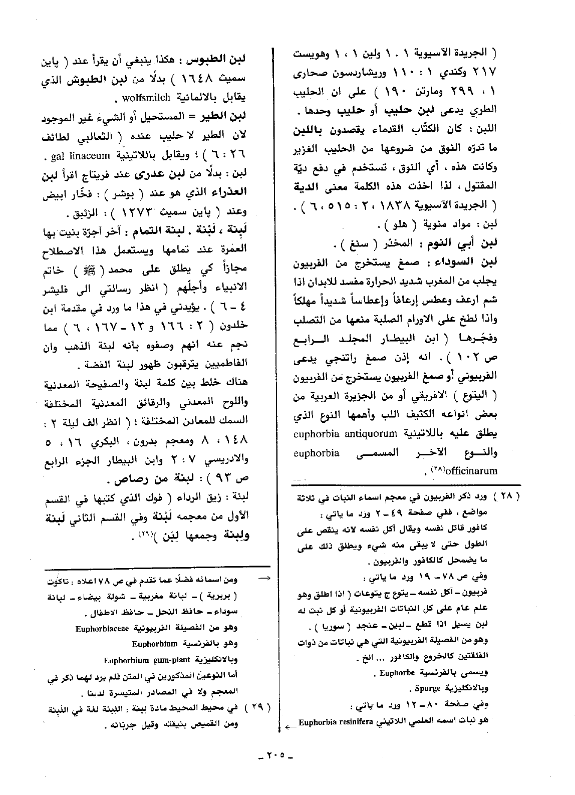 لبن: بدلاً من لبن عذري عند فريتاج اقرأ لبن العذراء الذي هو عند (بوشر): فخّار أبيض وعند (باين سميث 1273): الزئبق.