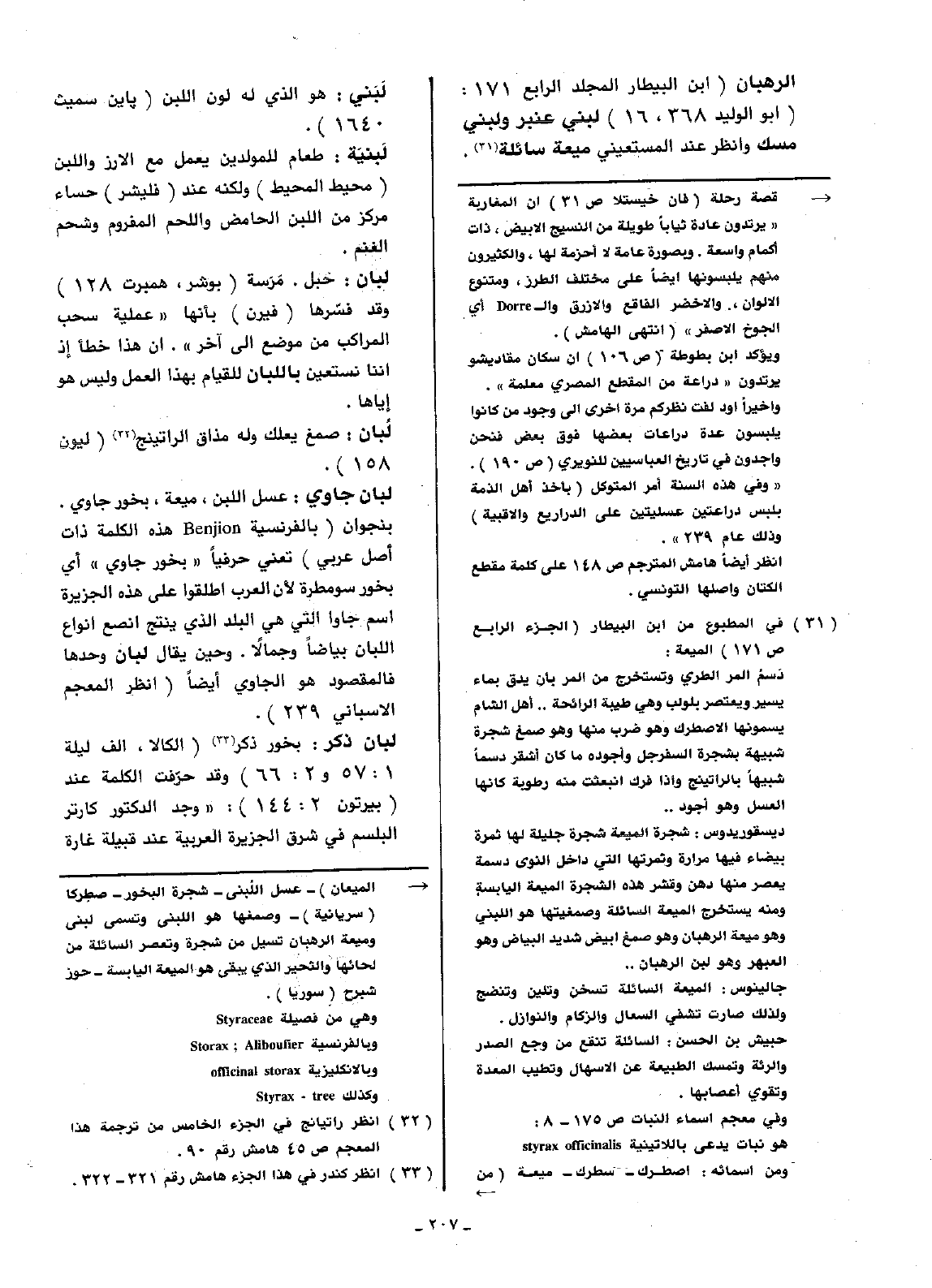الرهبان (ابن البيطار المجلد الرابع 171: (أبو الوليد 368، 16) لبني عنبر ولبني مسك وانظر عند المستعيني ميعة سائلة.