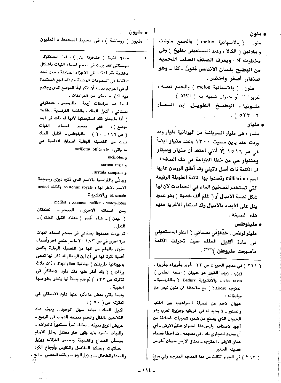 • مليلوطس: مليلولوطس: حذقوقي بستاني (انظر المستعيني في مادة إكليل الملك حيث تحرفت الكلمة فأصبحت مليوطن).