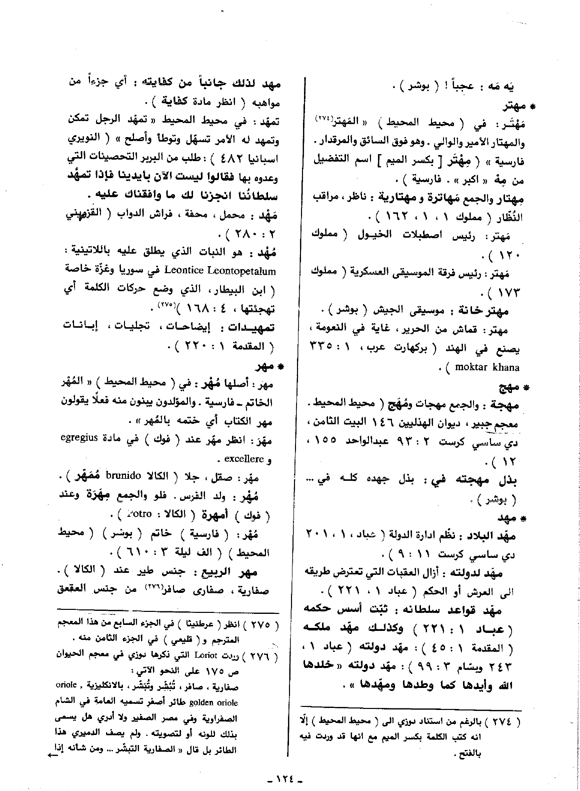 • مهتر: مهتر: في (محيط المحيط) (المهتر والمهتار الأمير والوالي. وهو فوق السائق والمرقدار. فارسية) (مهتر [بكسر الميم] أسم التفضيل من مه (أكبر). فارسية).