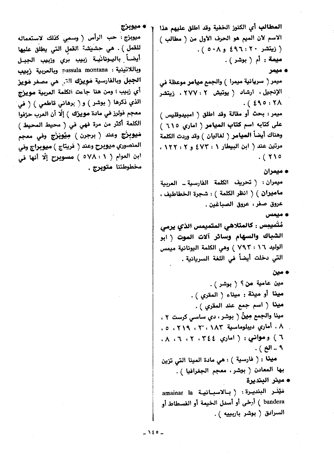 ميمر: بحث أو مقالة وقد أطلق (امبيدوقليس) على كتابه اسم كتاب الميامر (أماري 615) وهناك أيضا الميامر (لغاليان) وقد وردت الكلمة مرتين عند (ابن البيطار 1: 473 و2: 122، 215).
