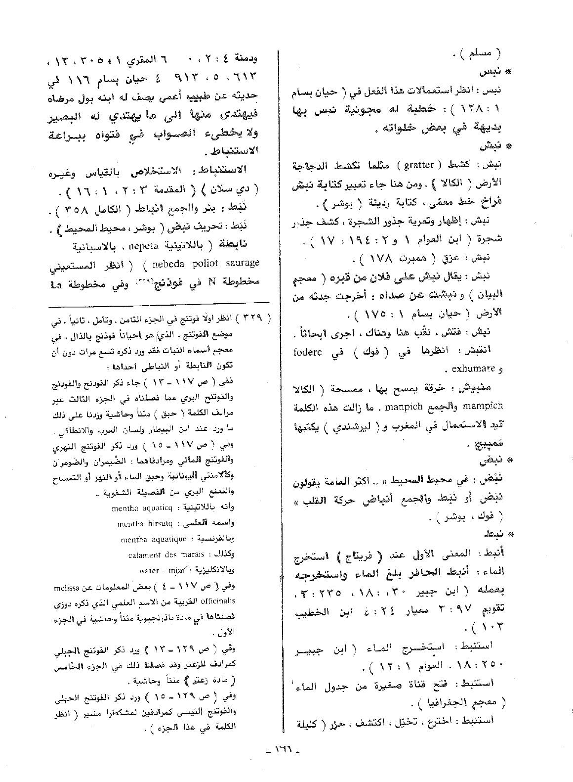 • نبط: انبط: المعنى الأول عند (فريتاج) استخرج الماء: انبط الحافر بلغ الماء واستخرجه بعمله (ابن جبير 30، 18، 235: 3، تقويم 97: 3 معيار 24: 4 ابن الخطيب 103).