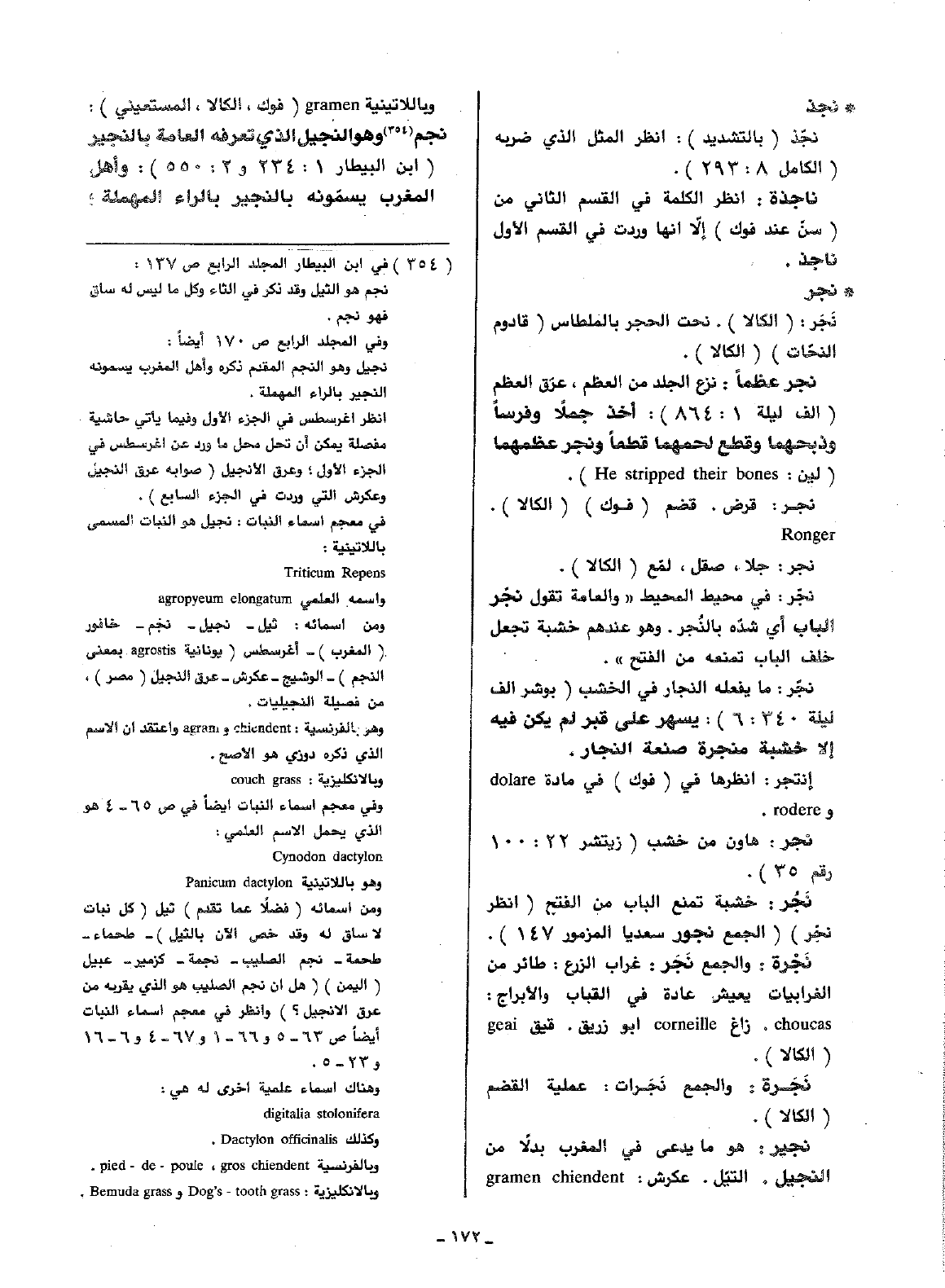 • نجذ: نجذ (بالتشديد): انظر المثل الذي ضربه (الكامل 8: 293).