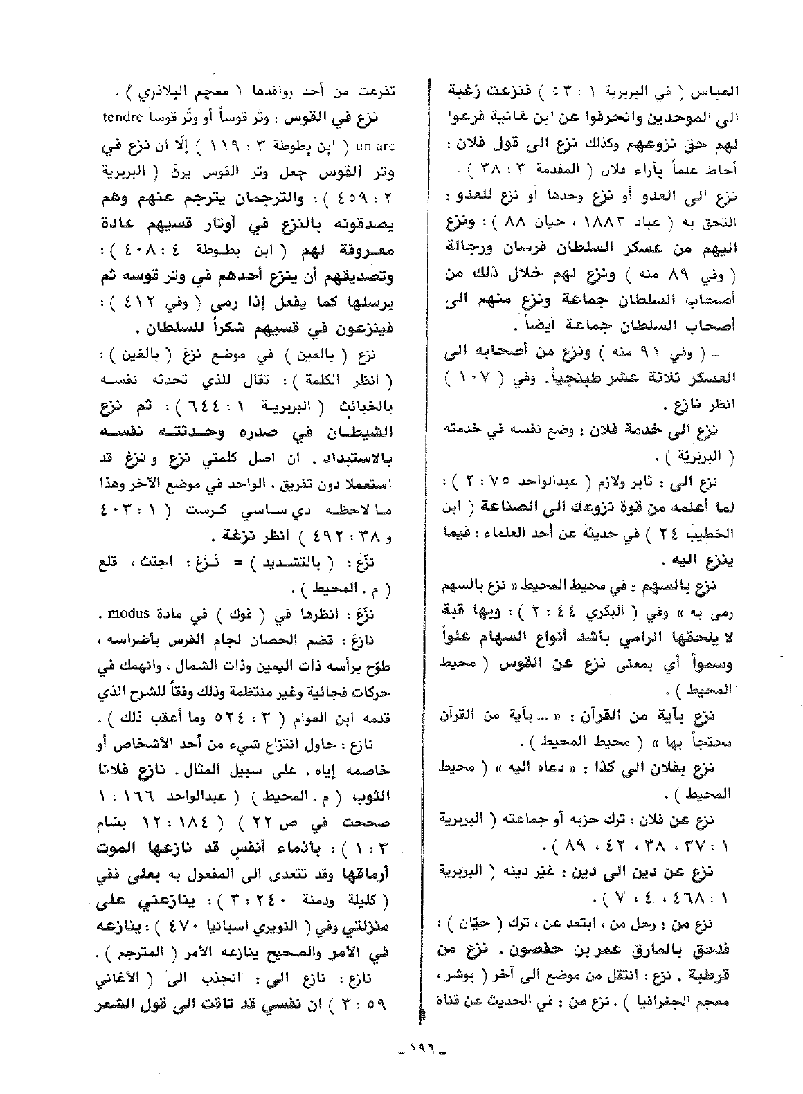 - (وفي 91 منه) ونزع من أصحابه إلى العسكر ثلاثة عشر طبنجيا. وفي (107) انظر نازع.