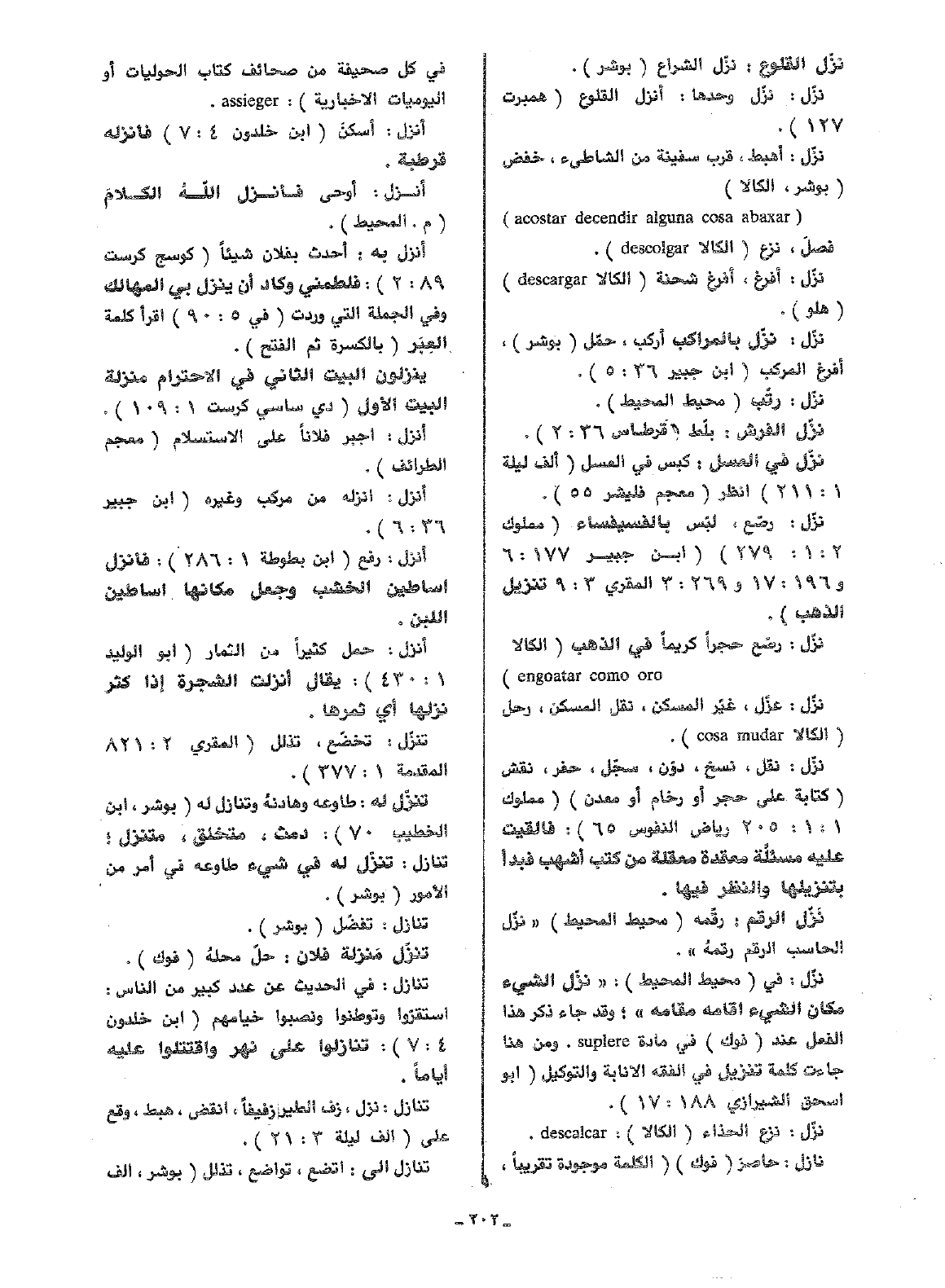 نزل: في (محيط المحيط): (نزل الشيء مكان الشيء أقامه مقامه)؛ وقد جاء ذكر هذا الفعل عند (فوك) في مادة suplere. ومن هنا جاءت كلمة تنزيل في الفقه الإنابة والتوكيل (أبو اسحق الشيرازي 188: 17).