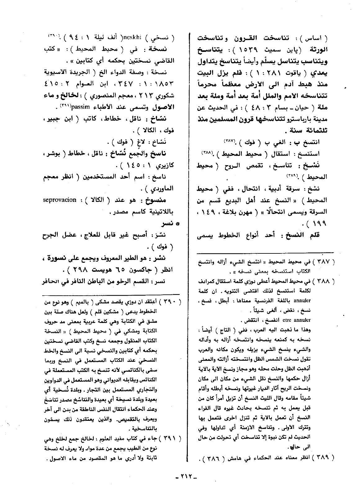قلم النسخ: أحد أنواع الخطوط يسمى (نسخي) neskhi ( ألف ليلة 1: 94).