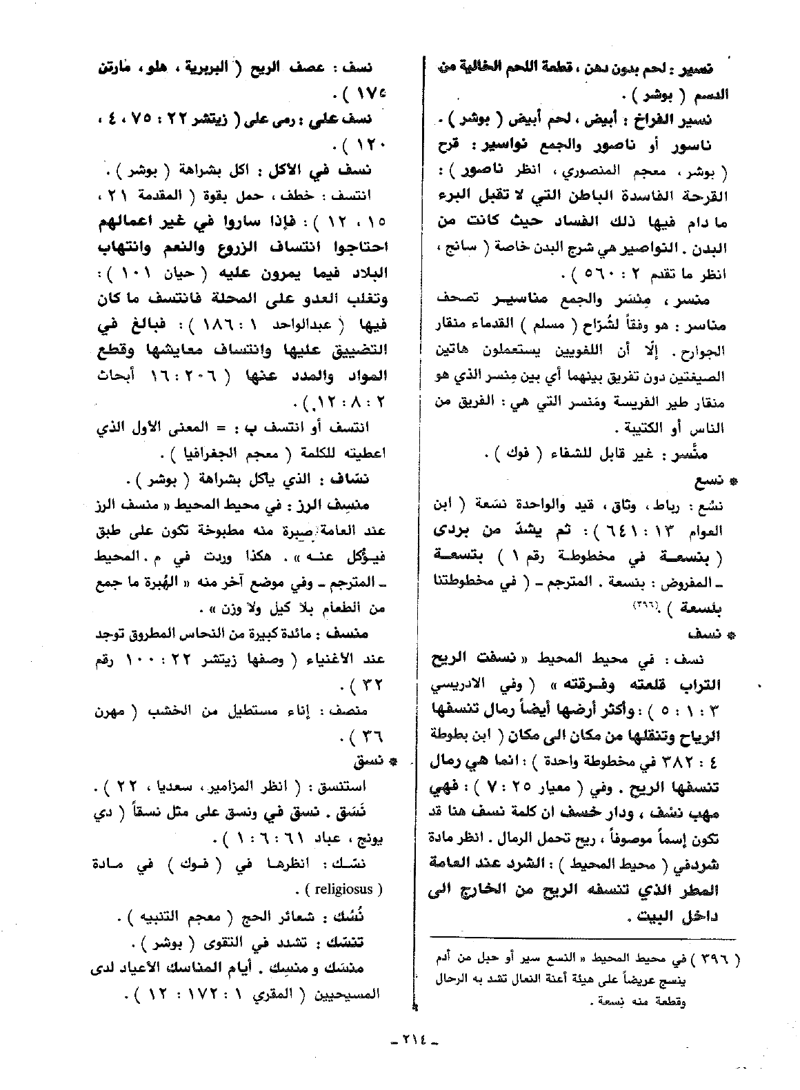 • نسف: نسف: في محيط المحيط (نسفت الريح التراب قلعته وفرقته) (وفي الادريسي 3: 1: 5): وأكثر أرضها أيضا رمال تنسفها الرياح وتنقلها من مكان إلى مكان (ابن بطوطة 4: 382 في مخطوطة واحدة): إنما هي رمال تنسفها الريح. وفي (معيار 25: 7): فهي مهب نسف، ودار خسف أن كلمة نسف هنا قد تكون اسما موصوفا، ريح تحمل الرمال. انظر مادة شرد في (محيط المحيط): الشرد عند العامة المطر الذي تنسفه الريح من الخارج إلى داخل البيت.