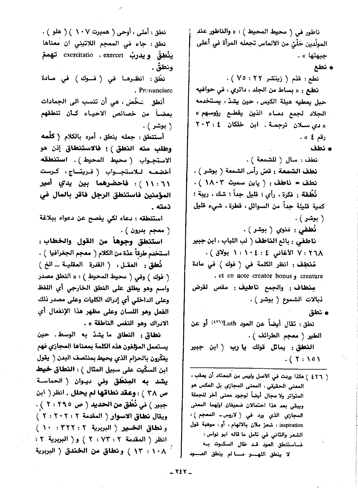 منطف: انظر الكلمة في (فوك) في مادة creature و bonus et en note creator.