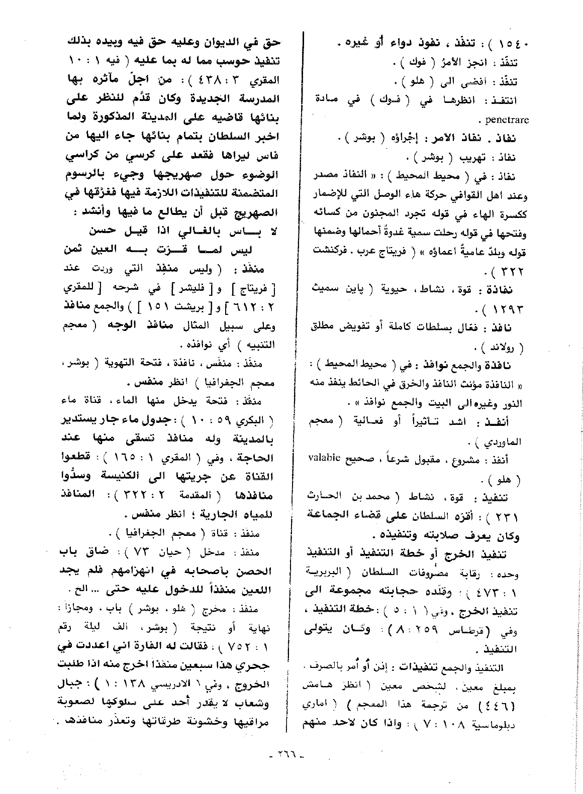 تنفيذ: قوة، نشاط (محمد بن الحارث 231): اقره السلطان على قضاء الجماعة وكان يعرف صلابته وتنفيذه.