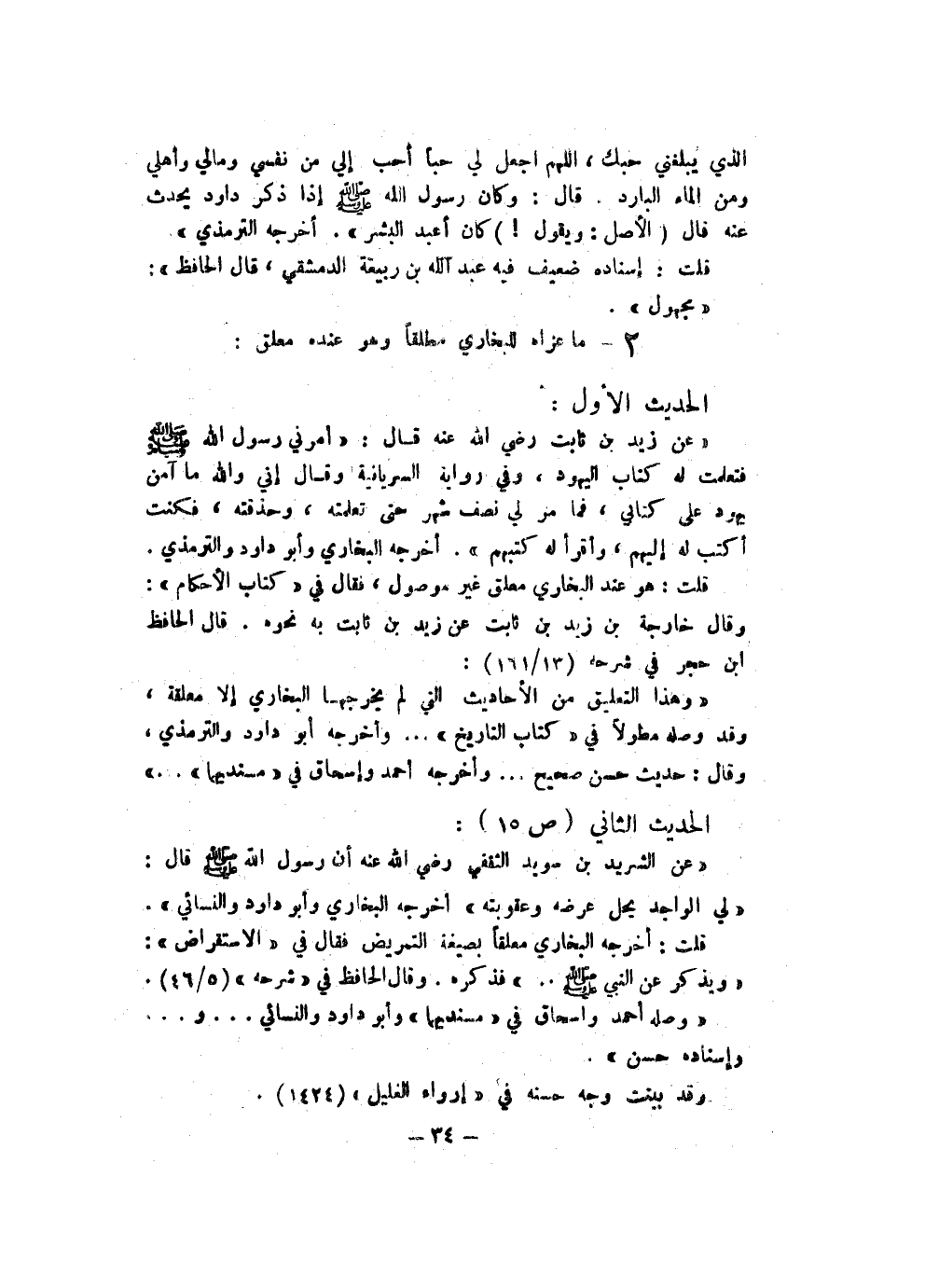 قلت: هو عند البخاري معلق غير موصول، فقال في «كتاب الأحكام»: وقال خارجة بن زيد بن ثابت عن زيد بن ثابت به نحوه. قال الحافظ ابن حجر في "شرحه" (13/ 161):