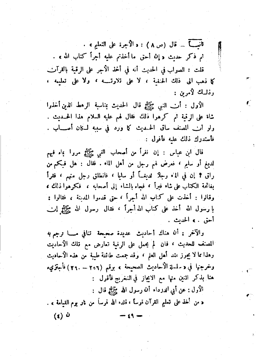 ثانيًا - قال (ص 8): «الأجرة على التعليم».