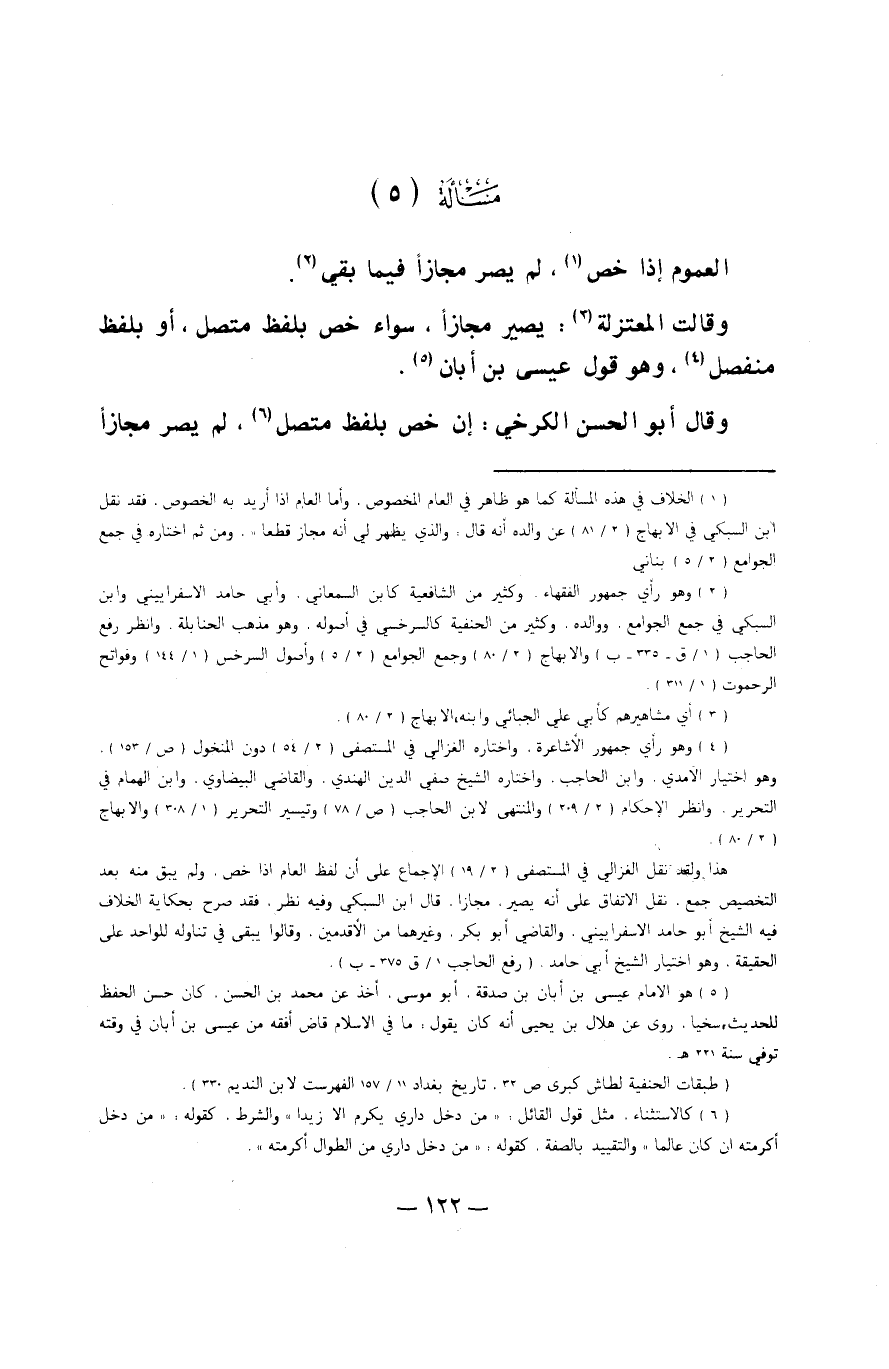 وَقَالَت الْمُعْتَزلَة يصير مجَازًا سَوَاء خص بِلَفْظ مُتَّصِل أَو بِلَفْظ مُنْفَصِل وَهُوَ قَول عِيسَى بن أبان