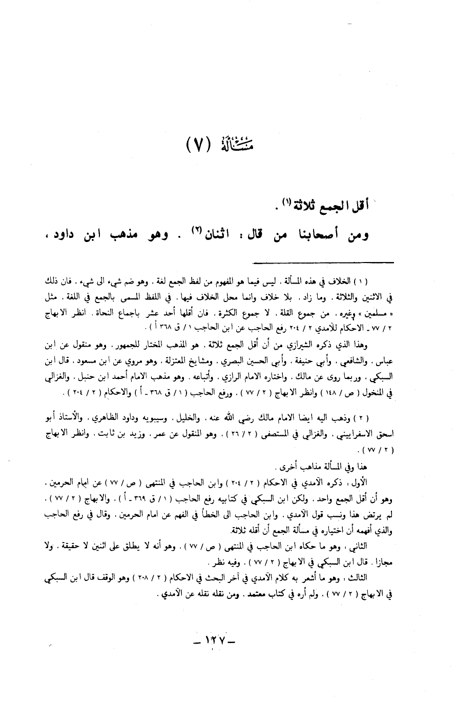 وَمن أَصْحَابنَا من قَالَ اثْنَان وَهُوَ مَذْهَب ابْن دَاوُد