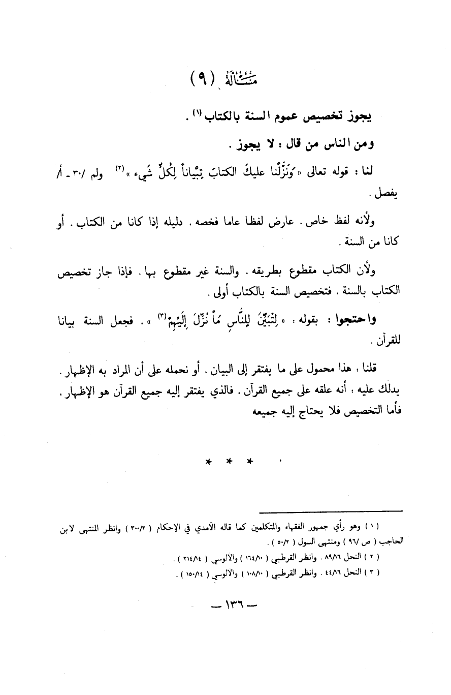 يجوز تَخْصِيص عُمُوم السّنة بِالْكتاب