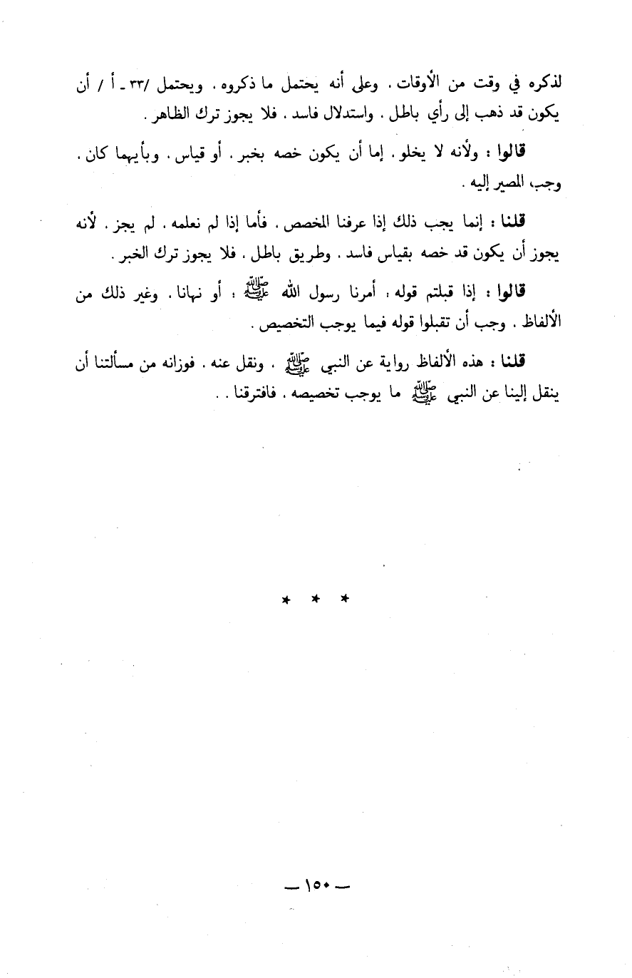 قُلْنَا هَذِه الْأَلْفَاظ رِوَايَة عَن النَّبِي صلى الله عَلَيْهِ وَسلم وَنقل عَنهُ فوزانه من مَسْأَلَتنَا أَن ينْقل إِلَيْنَا عَن النَّبِي صلى الله عَلَيْهِ وَسلم مَا يُوجب تَخْصِيصه فافترقنا