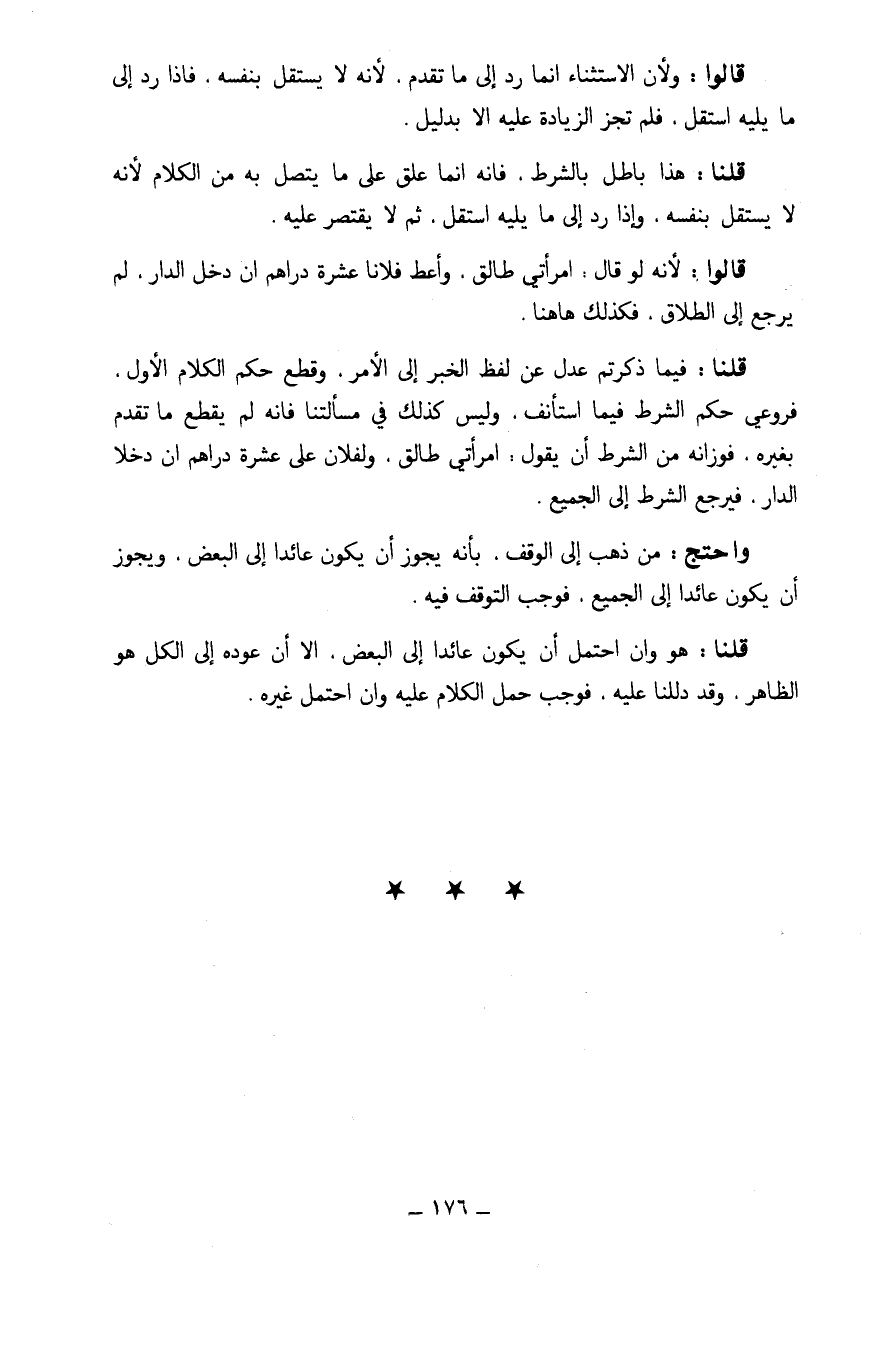 وَاحْتج من ذهب إِلَى الْوَقْف بِأَنَّهُ يجوز أَن يكون عَائِدًا إِلَى الْبَعْض وَيجوز أَن يكون عَائِدًا إِلَى الْجَمِيع فَوَجَبَ التَّوَقُّف فِيهِ