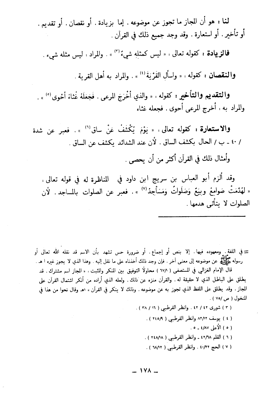 وَالنُّقْصَان كَقَوْلِه {واسأل الْقرْيَة} وَالْمرَاد بِهِ أهل الْقرْيَة
