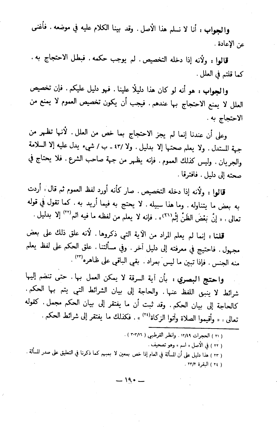 وَالْجَوَاب أَنا لَا نسلم هَذَا الأَصْل وَقد بَينا الْكَلَام عَلَيْهِ فِي مَوْضِعه فأغنى عَن الْإِعَادَة