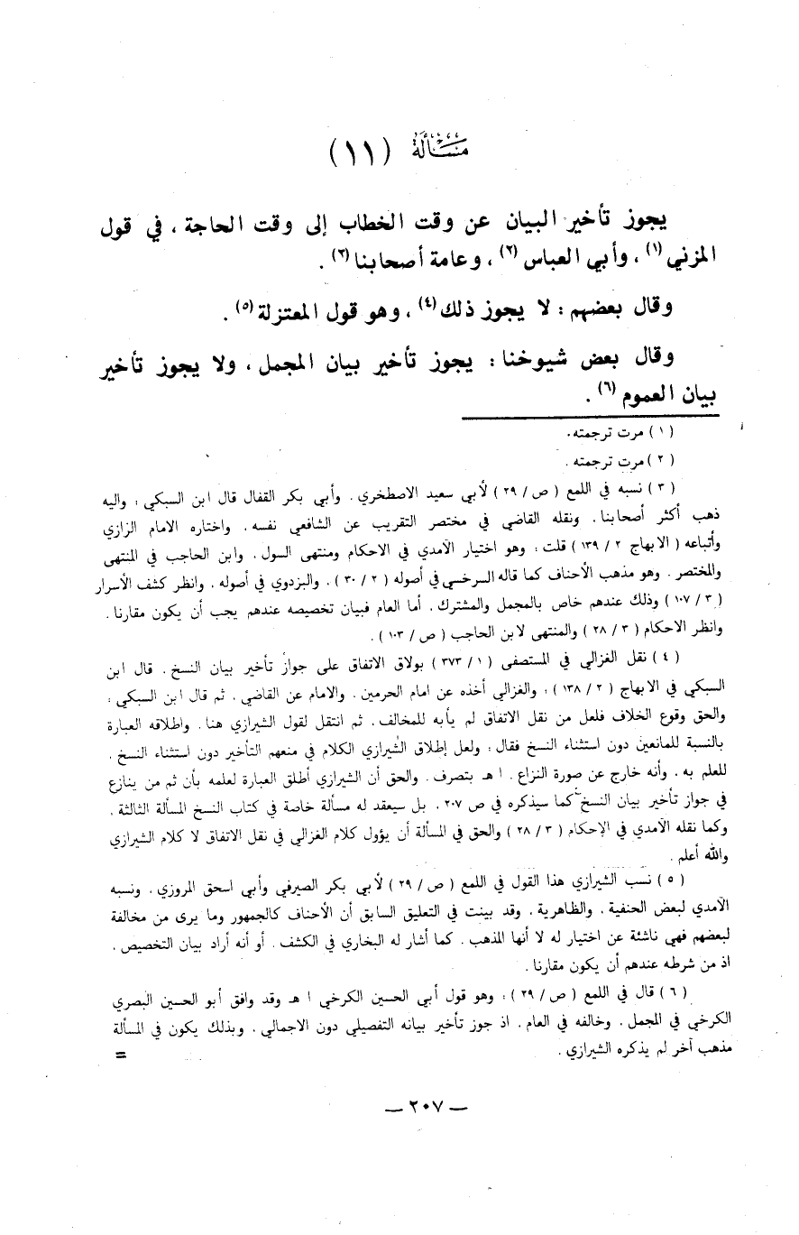 يجوز تَأْخِير الْبَيَان عَن وَقت الْخطاب إِلَى وَقت الْحَاجة فِي قَول الْمُزنِيّ وَأبي الْعَبَّاس وَعَامة أَصْحَابنَا