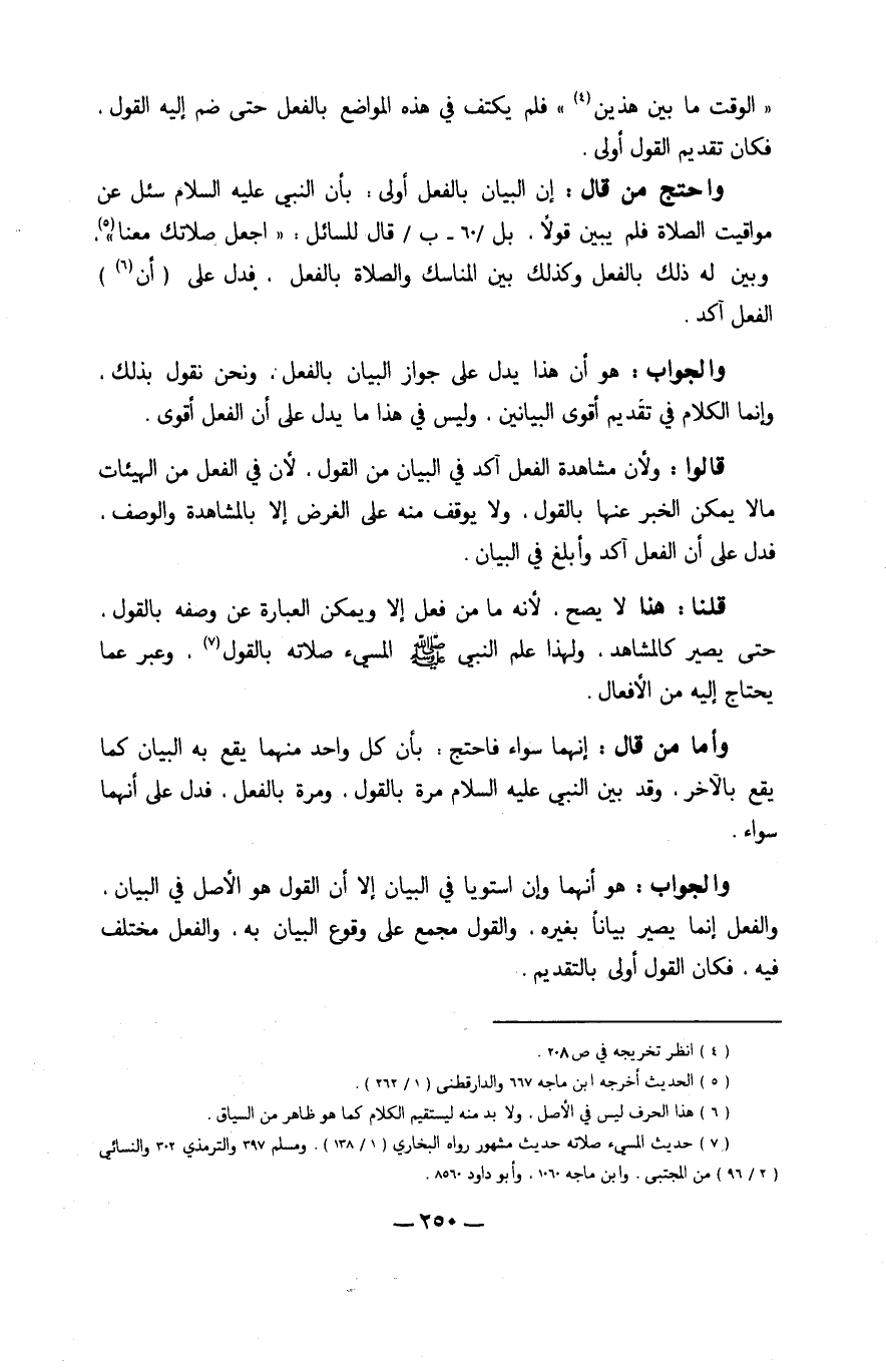 وَالْجَوَاب هُوَ أَن هَذَا يدل على جَوَاز الْبَيَان بِالْفِعْلِ وَنحن نقُول بذلك وَإِنَّمَا الْكَلَام فِي تَقْدِيم أقوى البيانين وَلَيْسَ فِي هَذَا مَا يدل على أَن الْفِعْل أقوى