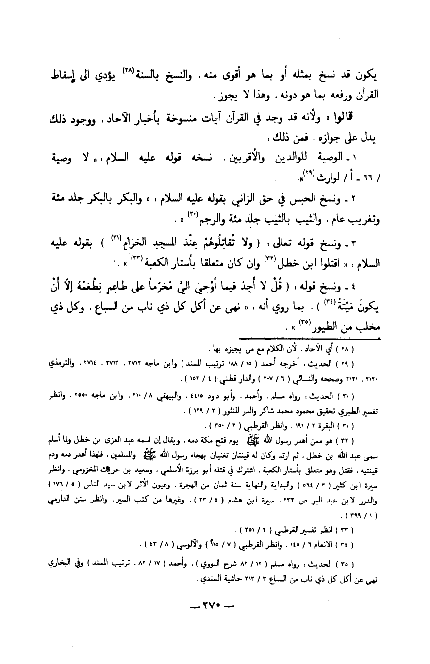 يكون قد نسخ بِمثلِهِ أَو بِمَا هُوَ أقوى مِنْهُ والنسخ بِالسنةِ يُؤَدِّي إِلَى إِسْقَاط الْقُرْآن وَرَفعه بِمَا هُوَ دونه وَهَذَا لَا يجوز