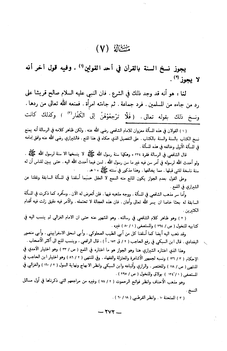 يجوز نسخ السّنة بِالْقُرْآنِ فِي أحد الْقَوْلَيْنِ وَفِيه قَول آخر أَنه لَا يجوز