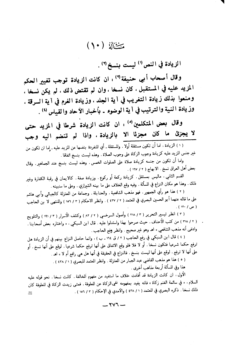 الزِّيَادَة فِي النَّص لَيست بنسخ