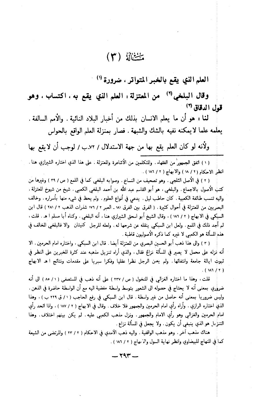 لنا هُوَ أَن مَا يعلم الْإِنْسَان بذلك من أَخْبَار الْبِلَاد النائية والأمم السالفة يُعلمهُ علما لَا يُمكنهُ نَفْيه بِالشَّكِّ والشبهة فَصَارَ بِمَنْزِلَة الْعلم الْوَاقِع بالحواس