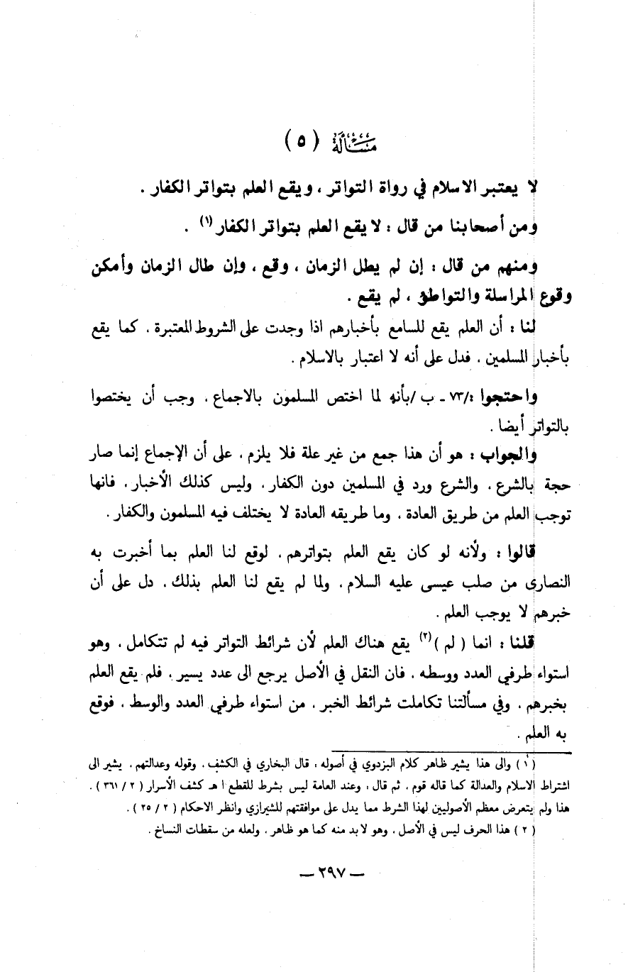 لَا يعْتَبر الْإِسْلَام فِي رُوَاة التَّوَاتُر وَيَقَع الْعلم بتواتر الْكفَّار