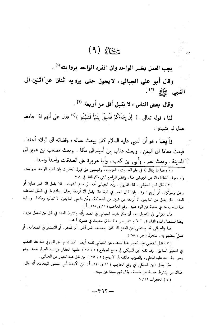 وَقَالَ أَبُو عَليّ الجبائي لَا يجوز حَتَّى يرويهِ اثْنَان عَن اثْنَيْنِ إِلَى النَّبِي صلى الله عَلَيْهِ وَسلم