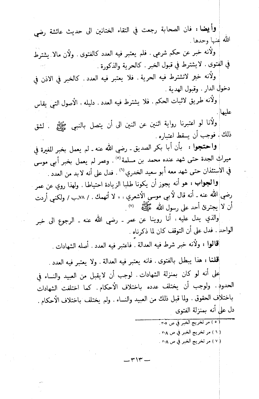 ولأنا لَو اعْتبرنَا رِوَايَة اثْنَيْنِ عَن اثْنَيْنِ إِلَى أَن يتَّصل بِالنَّبِيِّ صلى الله عَلَيْهِ وَسلم لشق ذَلِك فَوَجَبَ أَنِّي سقط اعْتِبَاره