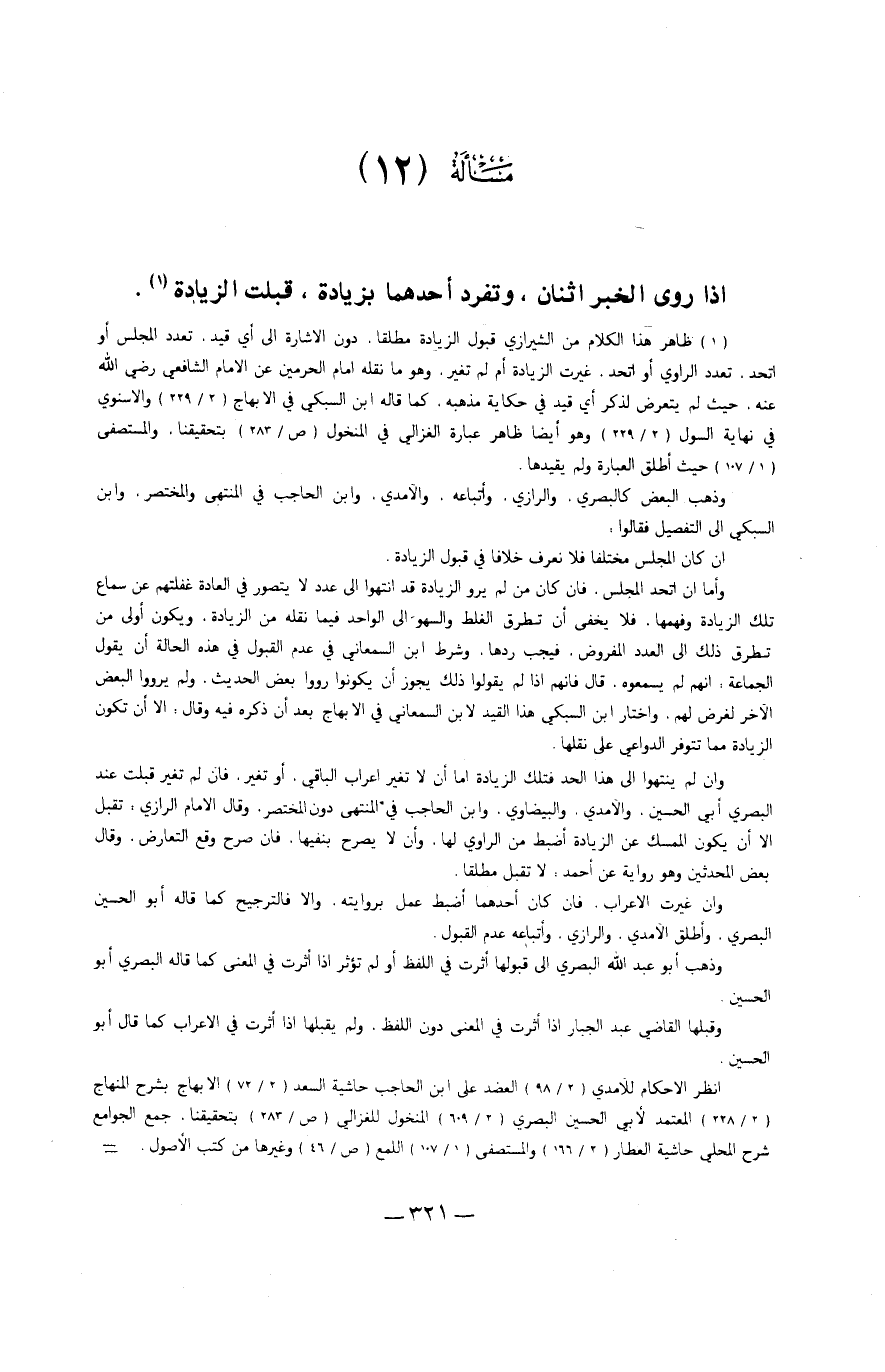 إِذا روى الْخَبَر اثْنَان وَتفرد أَحدهمَا بِزِيَادَة قبلت الزِّيَادَة