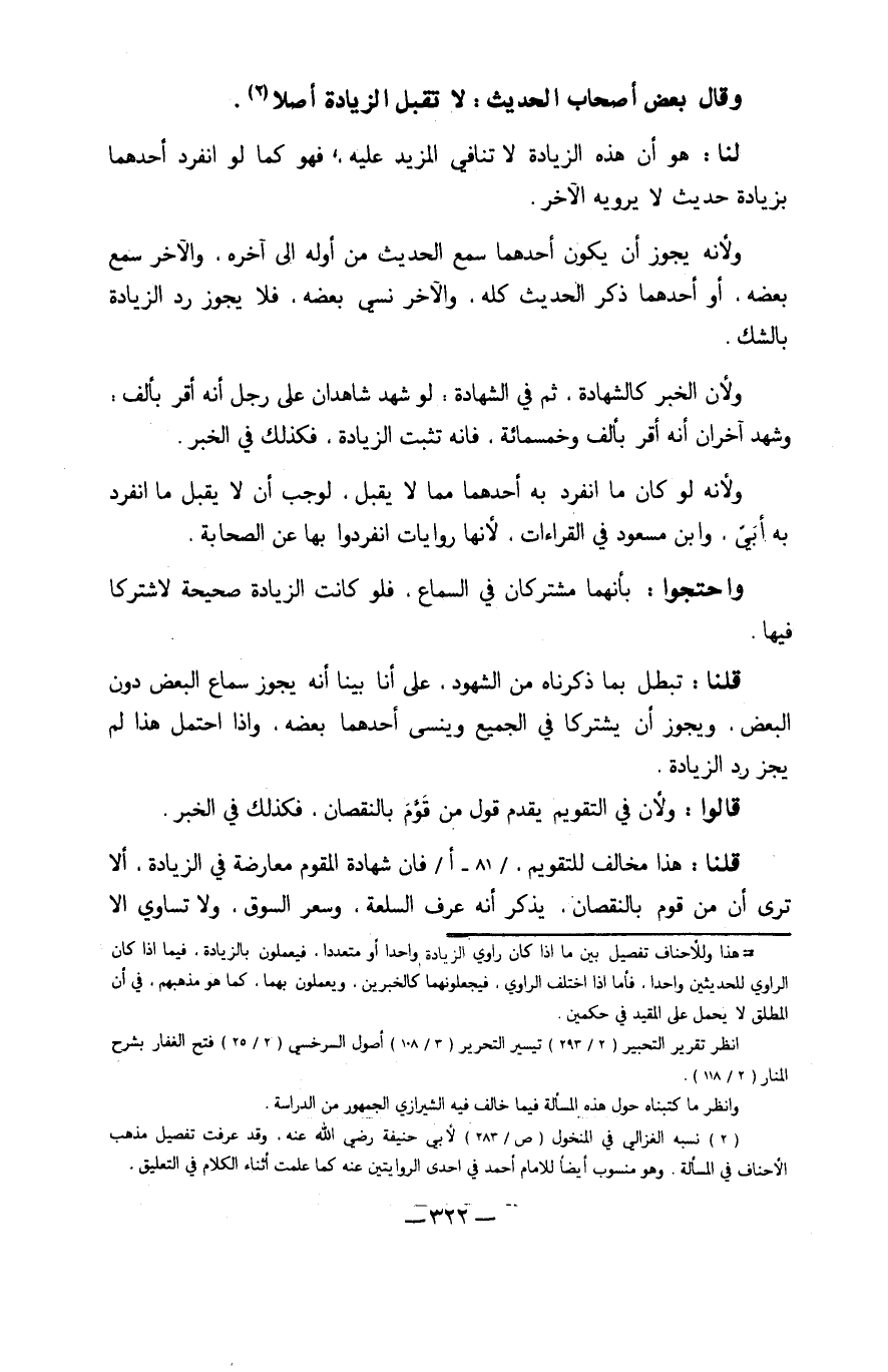 وَقَالَ بعض أَصْحَاب الحَدِيث لَا تقبل الزِّيَادَة أصلا
