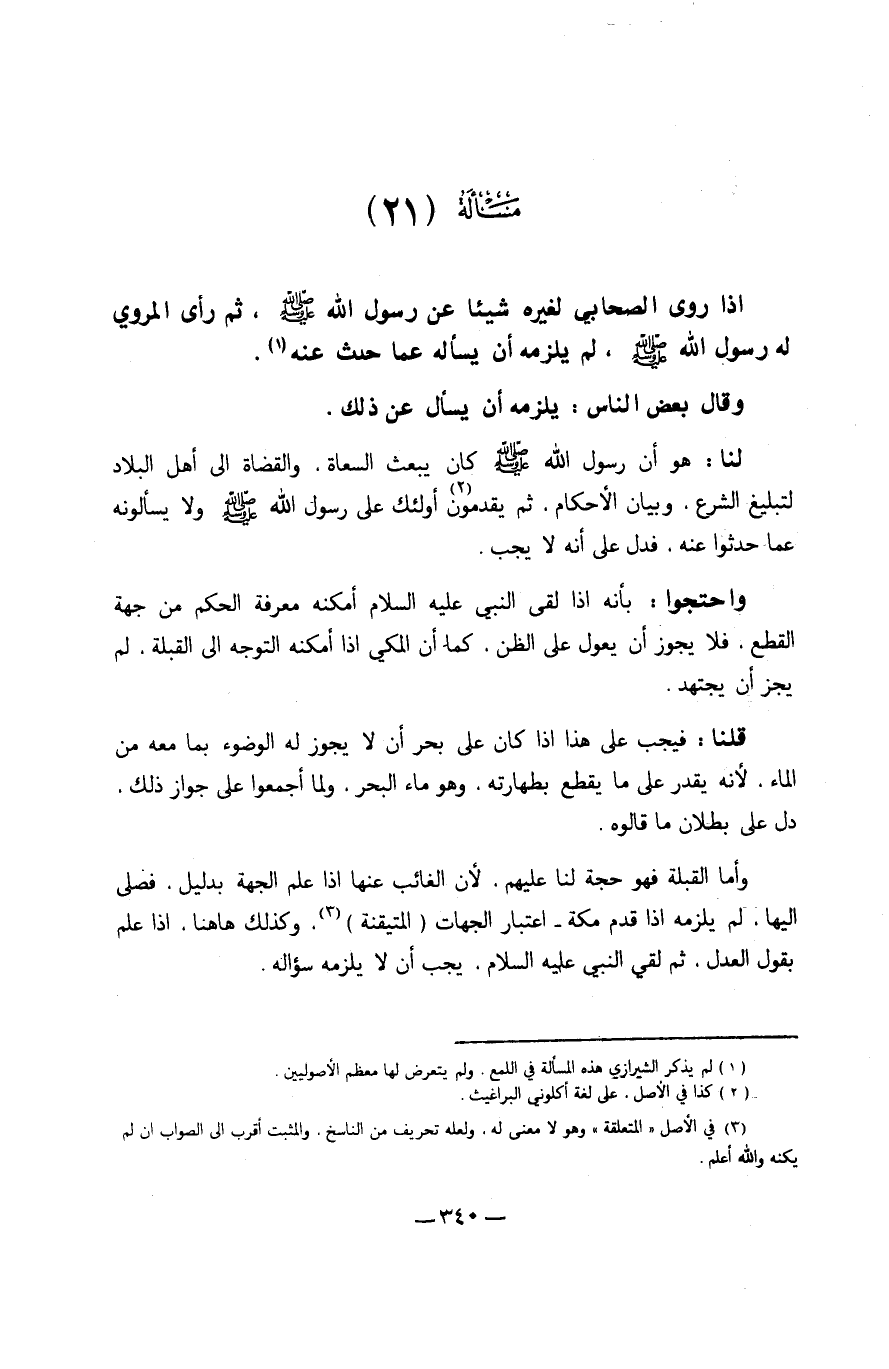 وَاحْتَجُّوا بِأَنَّهُ إِذا لقى النَّبِي عَلَيْهِ السَّلَام أمكنه معرفَة الحكم من جِهَة الْقطع فَلَا يجوز أَن يعول على الظَّن كَمَا أَن الْمَكِّيّ إِذا أمكنه التَّوَجُّه إِلَى الْقبْلَة لم يجز أَن يجْتَهد