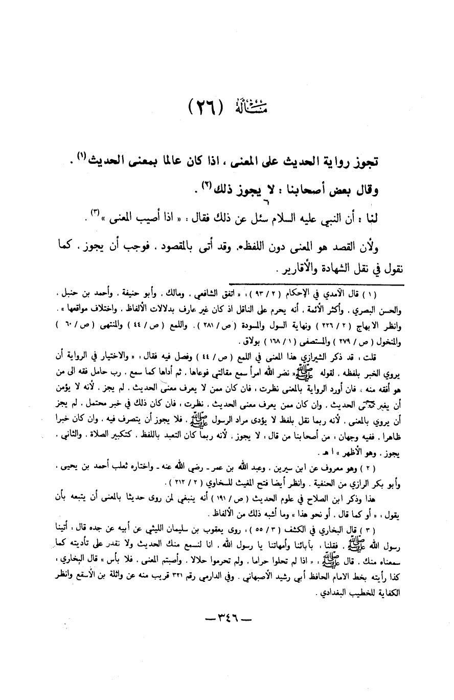 تجوز رِوَايَة الحَدِيث على الْمَعْنى إِذا كَانَ عَالما بِمَعْنى الحَدِيث