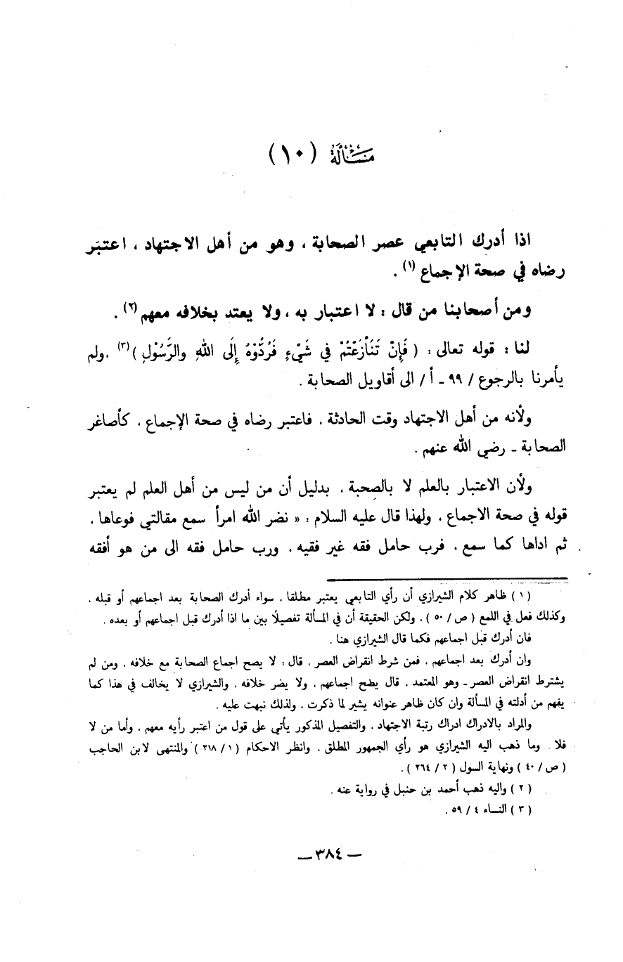 إِذا أدْرك التَّابِعِيّ عصر الصَّحَابَة وَهُوَ من أهل الِاجْتِهَاد اعْتبر رِضَاهُ فِي صِحَة الْإِجْمَاع
