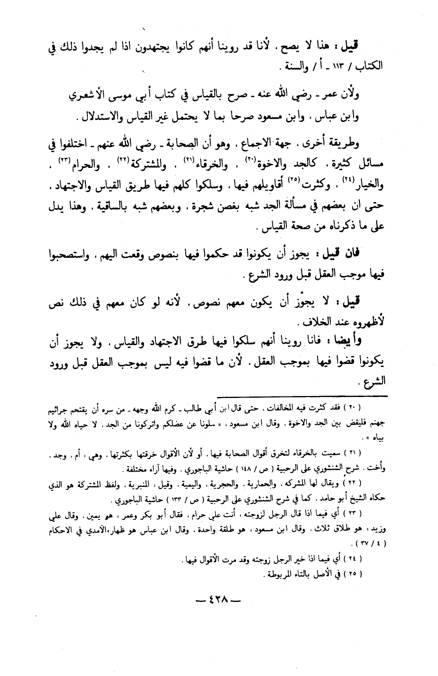 وَأَيْضًا فَإنَّا روينَا أَنهم سلكوا فِيهَا طرق الِاجْتِهَاد وَالْقِيَاس وَلَا يجوز أَن يَكُونُوا قضوا فِيهَا بِمُوجب الْعقل لِأَن مَا قضوا فِيهِ لَيْسَ بِمُوجب الْعقل قبل وُرُود الشَّرْع